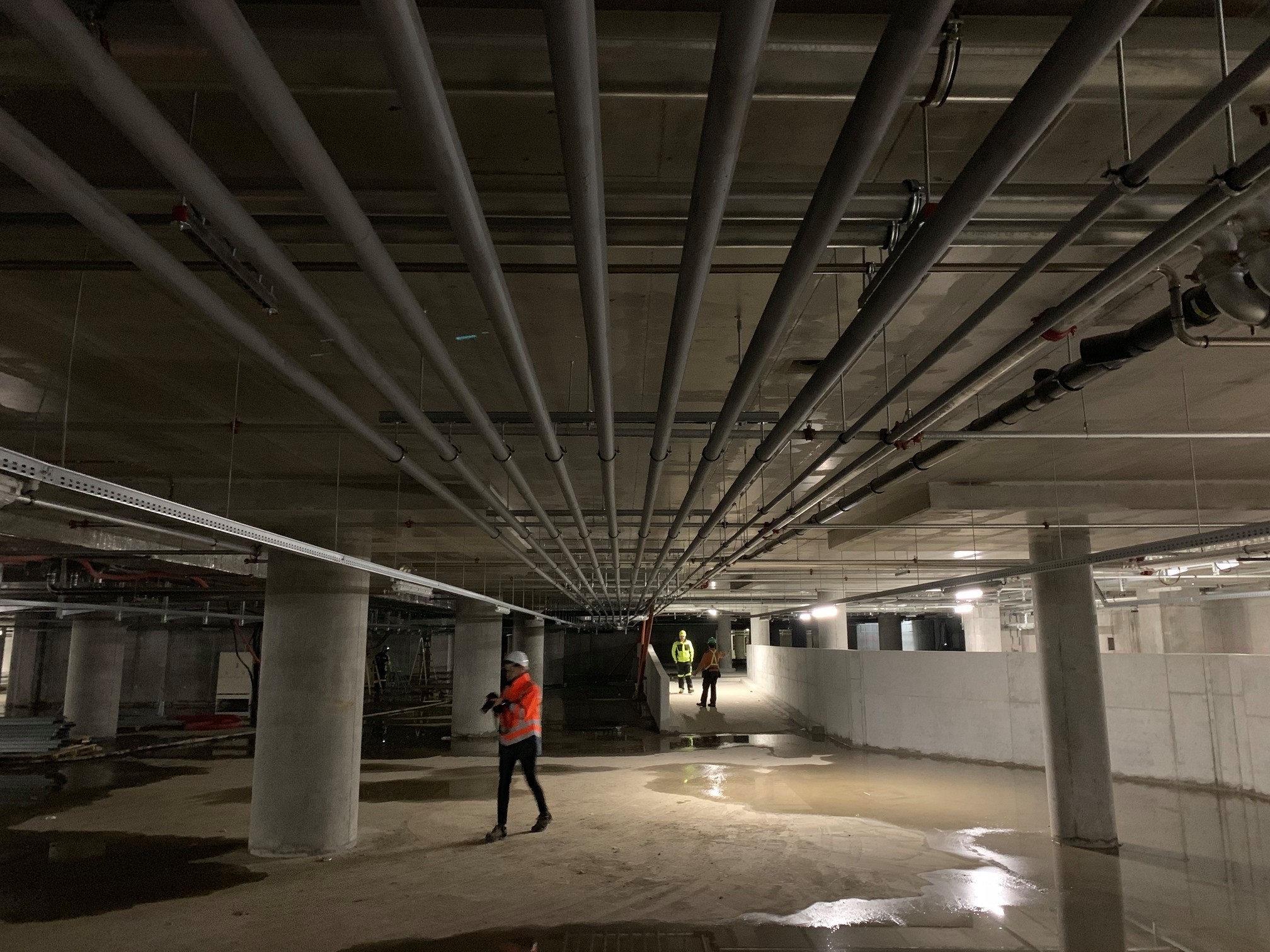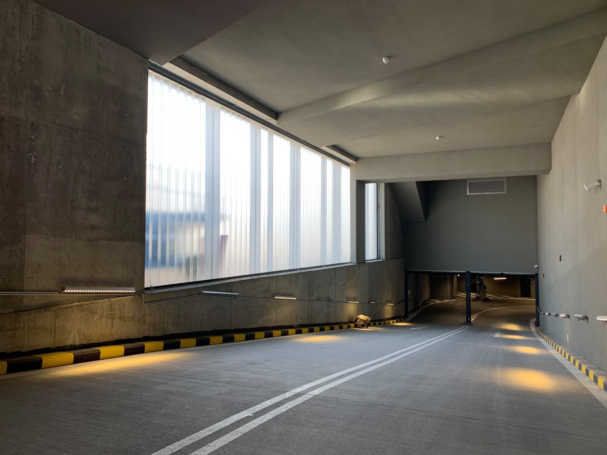 Druhé podzemné podlažie – alebo parking s kapacitou približne 1200 miest. Celkovo bude v projekte k dispozícii 2150 parkovacích miest, rozdelené v podzemí aj na streche: