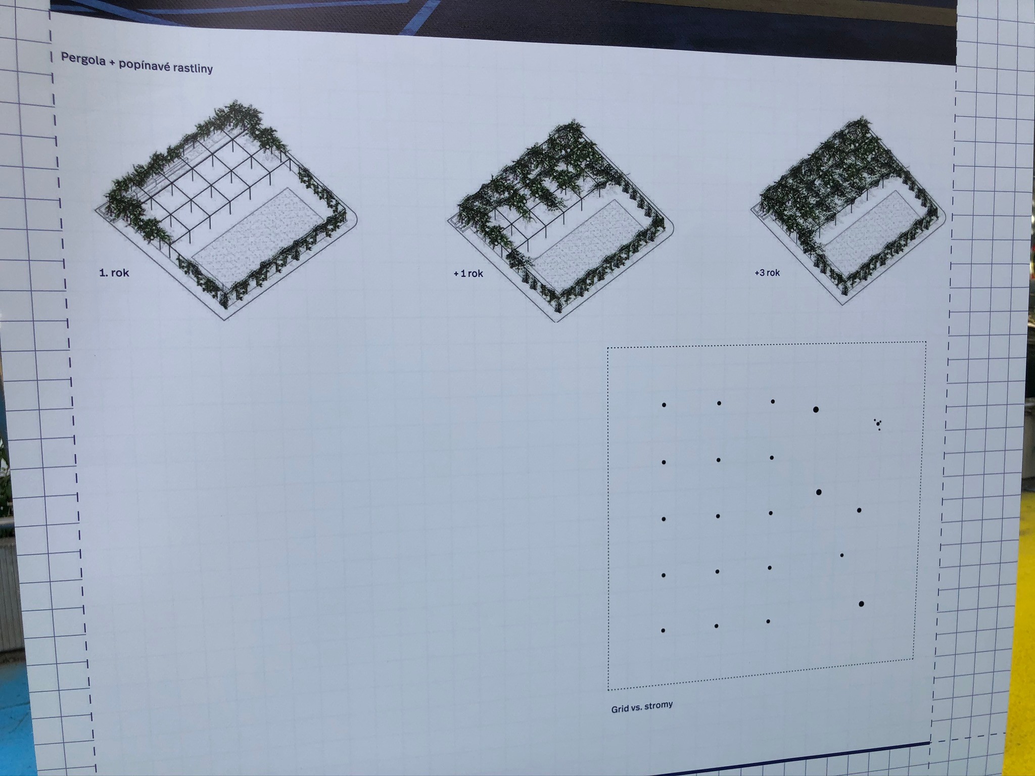 Popínavá zeleň bude vytvárať tieň nad priestorovou mriežkou