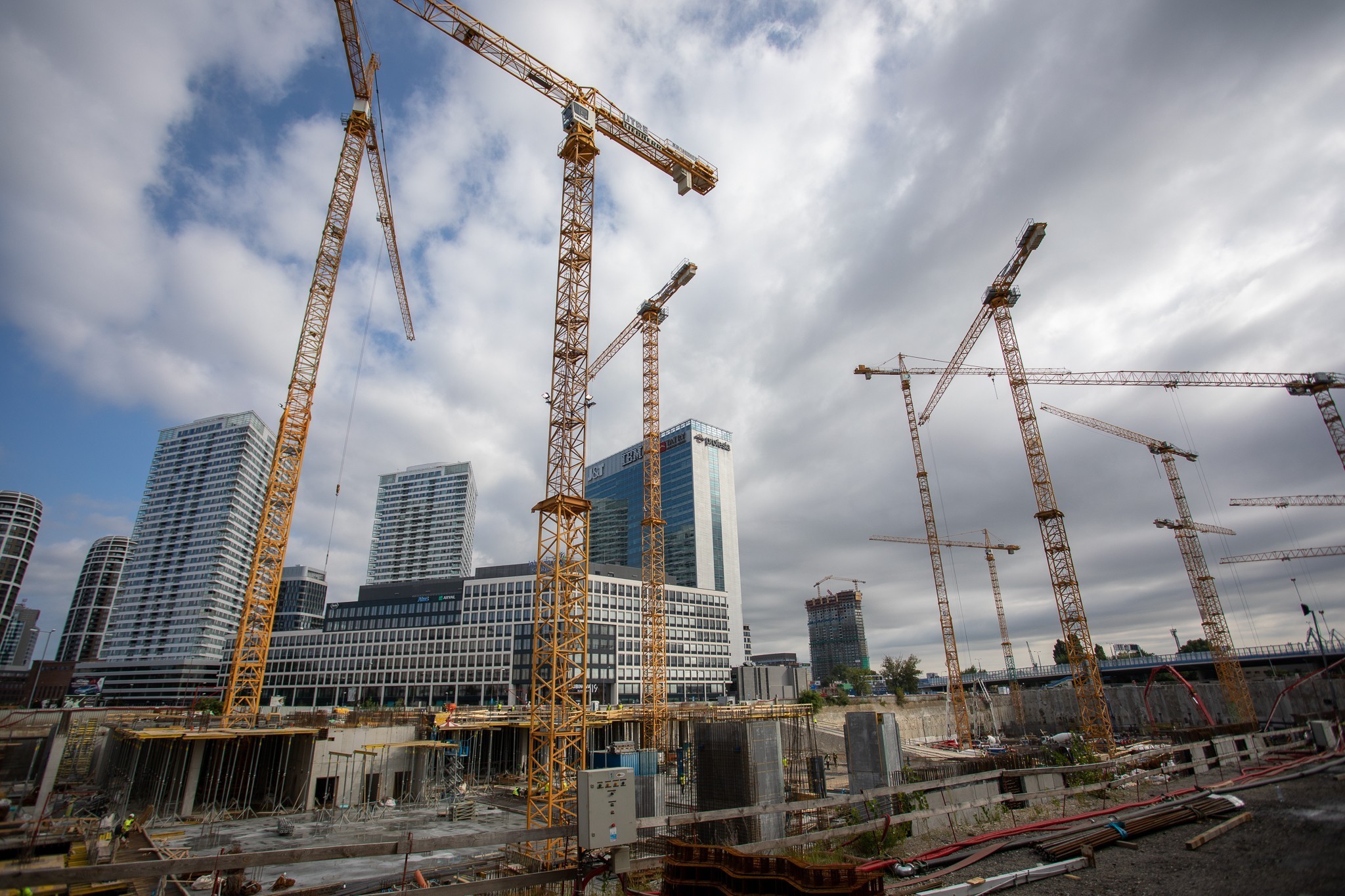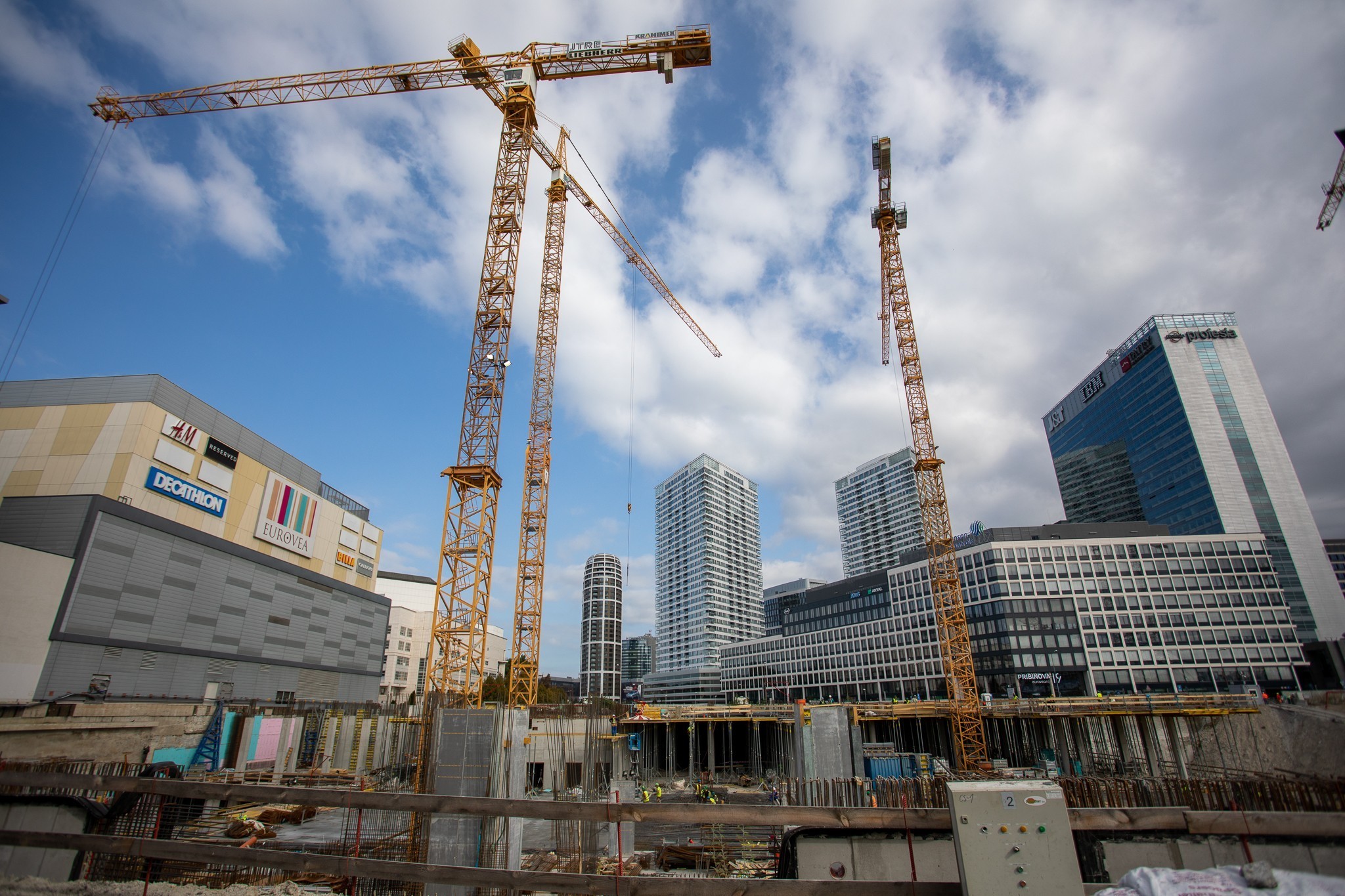 V máji na stavenisku vyrástol prvý žeriav, takmer 91 metrov vysoký nosný žeriav pre budovanie nákupného centra. Celkovo bude na projekte pracovať 14 žeriavov, pričom najvyšší, aký bol kedy na Slovensku postavený, bude postupne rásť spolu s mrakodrapom Eurovea Tower. V súčasnosti na stavbe pracuje denne priemerne takmer 300 pracovníkov.