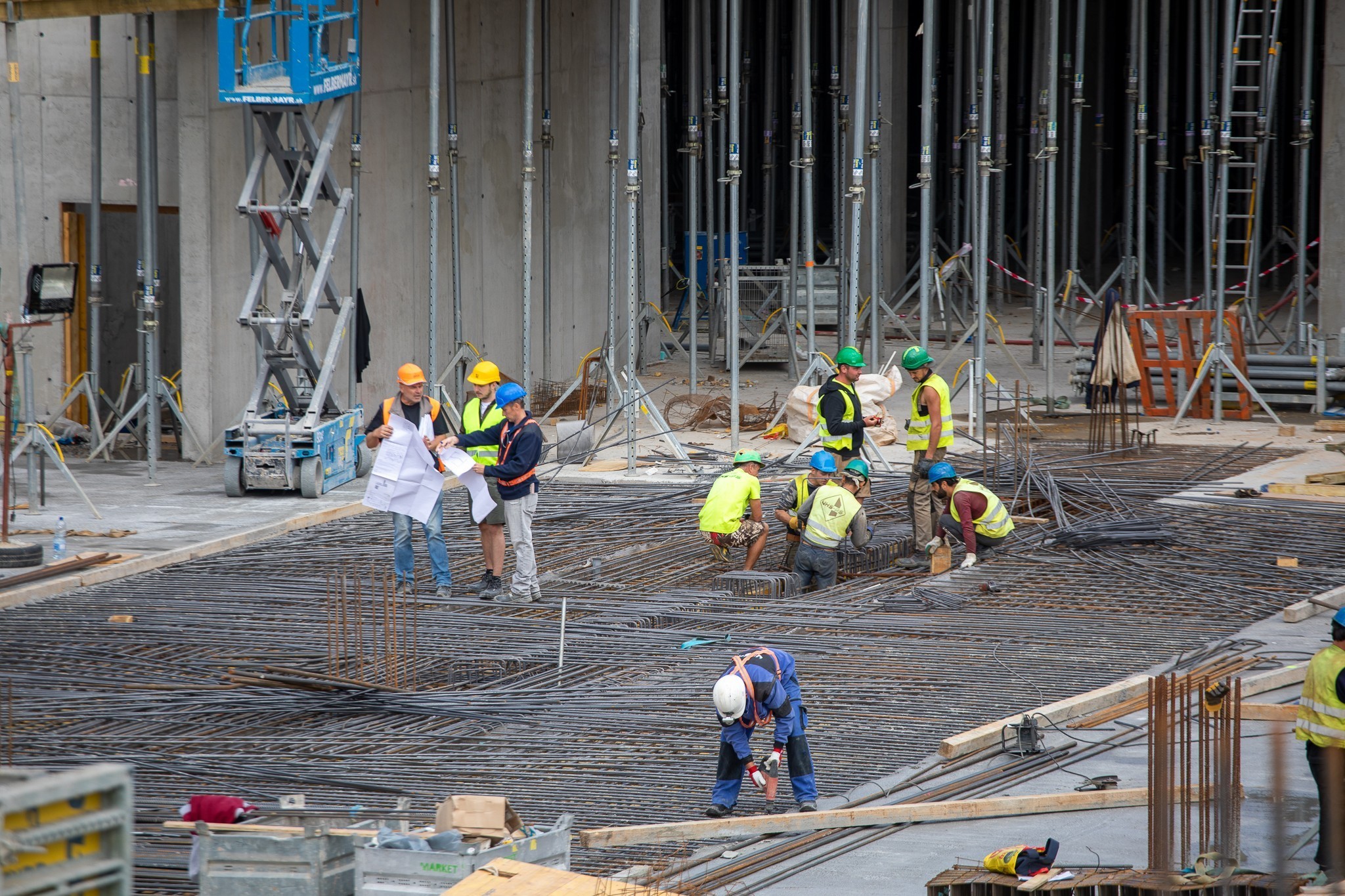 Betónovanie základovej dosky mrakodrapu zabezpečuje na jednej smene 40 pracovníkov