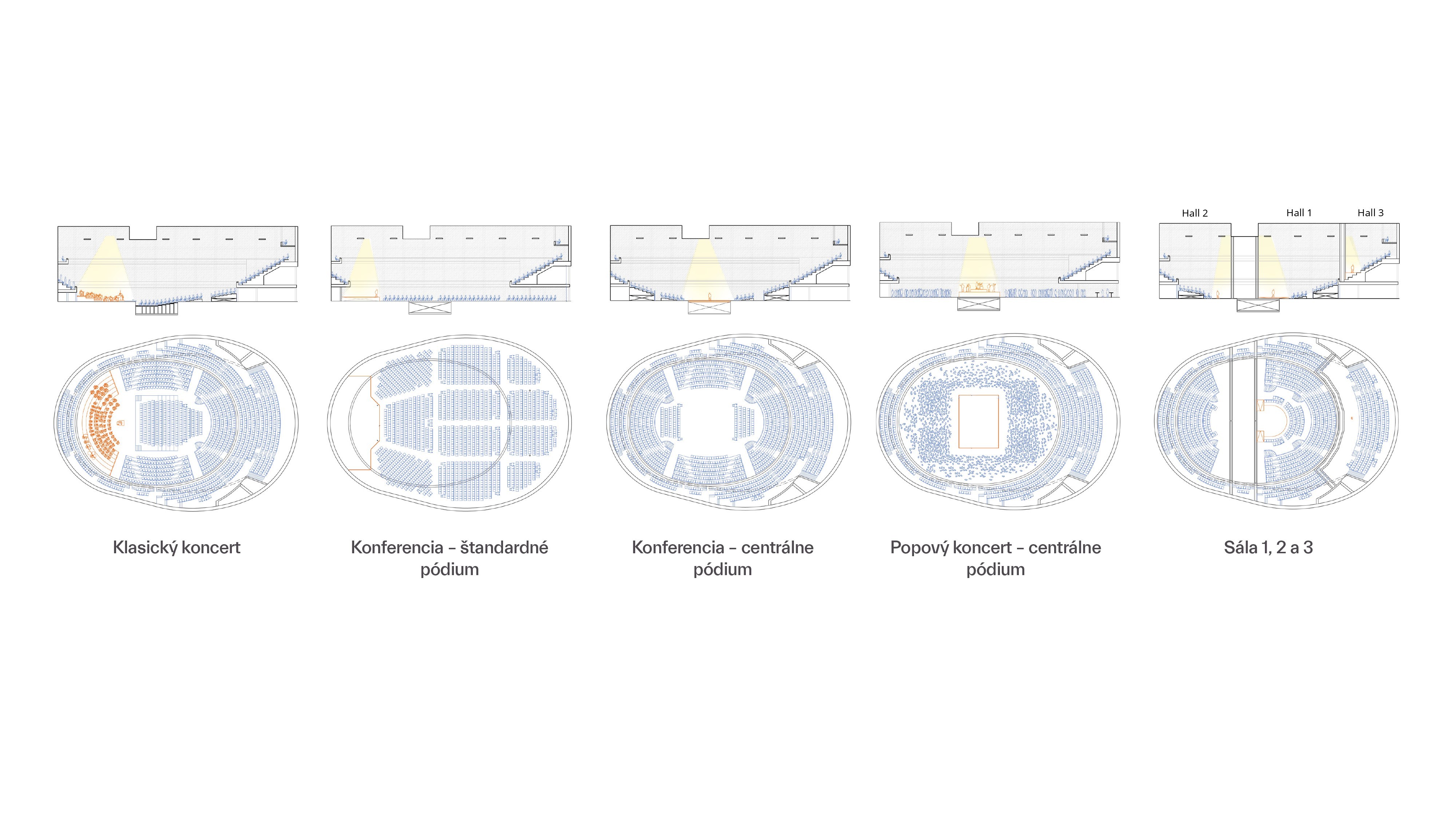 Sála s dvoma balkónmi bude pozostávať z modulárnych častí a bude sa dať flexibilne predeliť vertikálnymi akustickými stenami na tri rôzne fóra na dvoch podlažiach – dve na prízemí a jedno na balkóne. Hlavná sála tak ponúkne organizátorom flexibilitu a rozmanitosť, a zatiaľ čo na jednom fóre sa môže konať konferencia, na ďalších sa simultánne môže konať koncert alebo filmová projekcia.