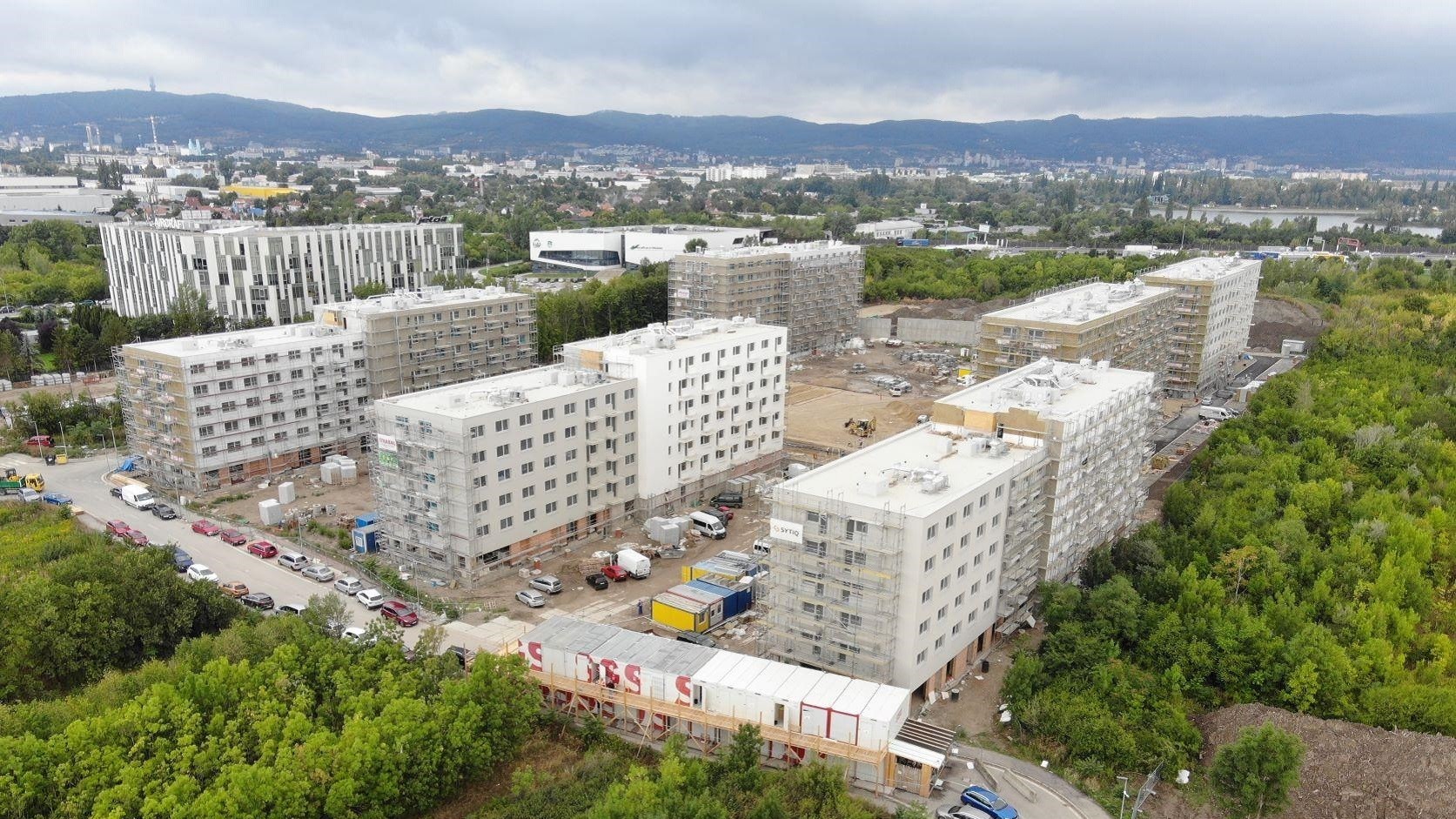 Pokiaľ ide o výstavbu bytov prvej etapy, veľká časť momentálne prebiehajúcich stavebných prác sa už presunula do interiéru. V domoch je hotových viac ako 50 percent deliacich priečok, omietky a potery finalizujú. Rozvody ústredného kúrenia, vody elektriny a slaboprúdových rozvodov v bytoch sú dokončené. Do práce sa už naplno pustili obkladači, ktorí dokončujú kúpeľne podľa požiadaviek klienta.