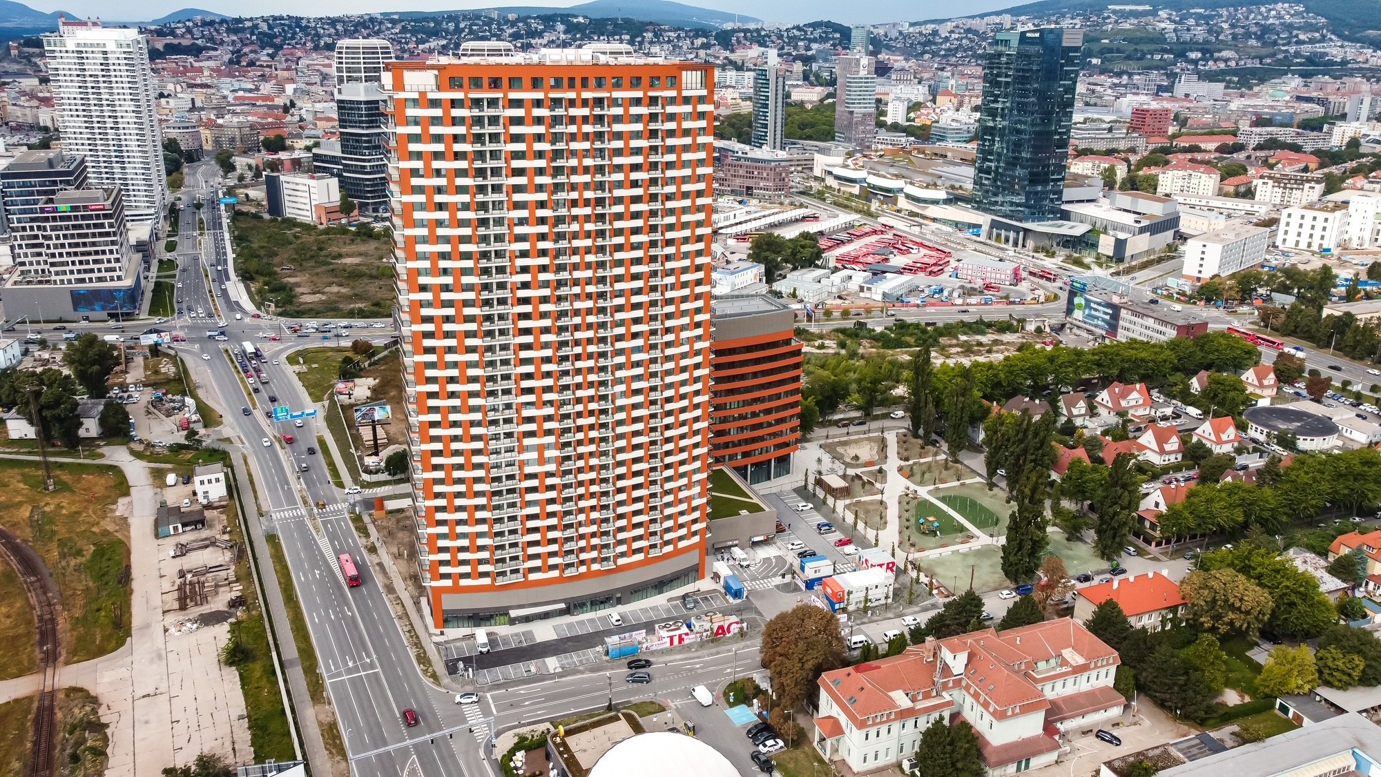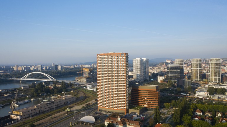 Po ukončení prác na suteréne a garážovom dome napredovali práce od tretieho poschodia v tempe jedno poschodie za desať dní. „Strechu nad 35.poschodím sme dobetónovali v novembri 2020 a na kolaudáciu sme stavbu pripravili do septembra 2021. Na parametre tejto stavby je to veľmi dobrý výsledok,“ hovorí hlavný stavbyvedúci Martin Barila zo spoločnosti STRABAG Pozemné a inžinierske staviteľstvo s. r. o., ktorá bola generálnym dodávateľom rezidenčnej časti.