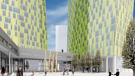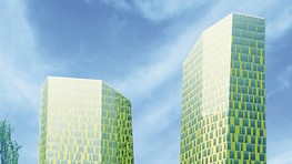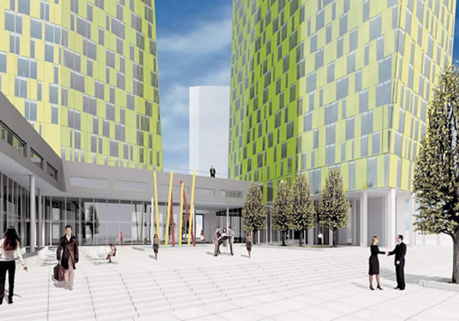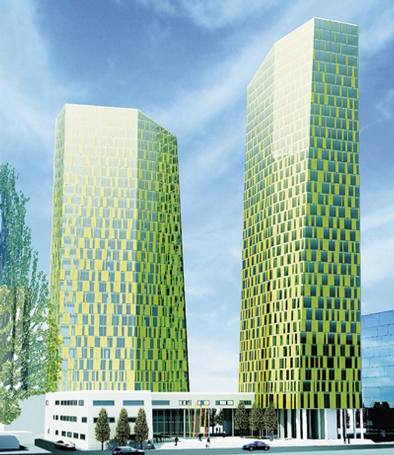 Obytný súbor predstavuje kompozíciu troch hmôt umiestnených na vyvýšenom námestí - dvoch vertikálnych a jednej horizontálnej, ktorá má tvoriť spoločnú trojpodlažnú podnož vertikálnym hmotám. Naplánované sú dve výškové dominanty unikátnych zošikmených tvarov a rôznych výšok, jedna s 34, druhá so 40 nadzemnými podlažiami. Ich fasády sú zo strany priľahlej k námestiu zošikmené, takže obe veže sa smerom hore zužujú. Ich spoločná podnož má mať tri nadzemné podlažia.