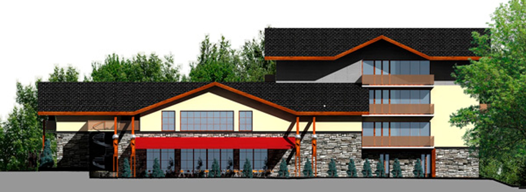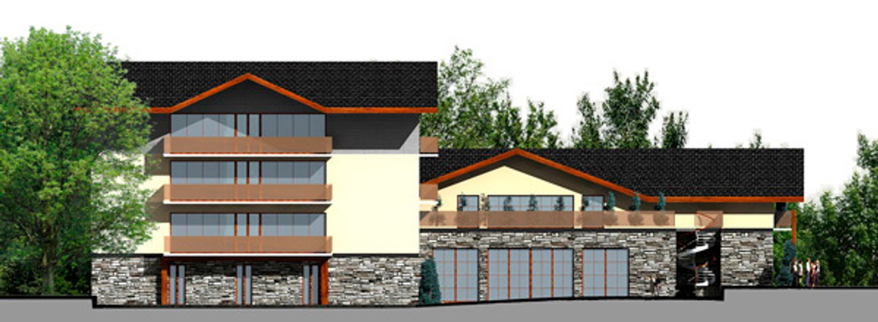 Architektúra objektu svojím striedmym výrazom zachytáva atmosféru nedávnej histórie, ktorou dolina dýchala v čase, keď boli na Železnej studničke v prevádzke mestské kúpele. Hlavný objekt je symetricky členený troma rizalitmi. Sedlová strecha bude pokrytá krytinou v tmavosivom odtieni. Povrchovú úpravu prízemia bude tvoriť ušľachtilý kamenný obklad. Vnútorné priestory objektu budú prepojené s exteriérom najmä cez terasy reštaurácie na juhozápadnej strane. Hlavný vstup do objektu bude orientovaný zo strany Cesty mládeže do dvojpodlažnej časti obsahujúcej vstupné priestory, reštauráciu a spoločenské priestory. Objekt je navrhovaný tak, aby výrazne plošne, výškovo ani objemovo nepresahoval pôvodnú stavbu. Bude rozdelený na dva základné funkčné celky - ubytovaciu časť a spoločenskú časť s reštauráciou. Z hľadiska inžiniersko-technického zabezpečenia objektu je riešenie bez akéhokoľvek negatívneho vplyvu na životné prostredie. Pri dostavbe nedôjde k žiadnemu výrubu existujúcich drevín. Predpokladaný termín ukončenia dostavby je rok 2009.