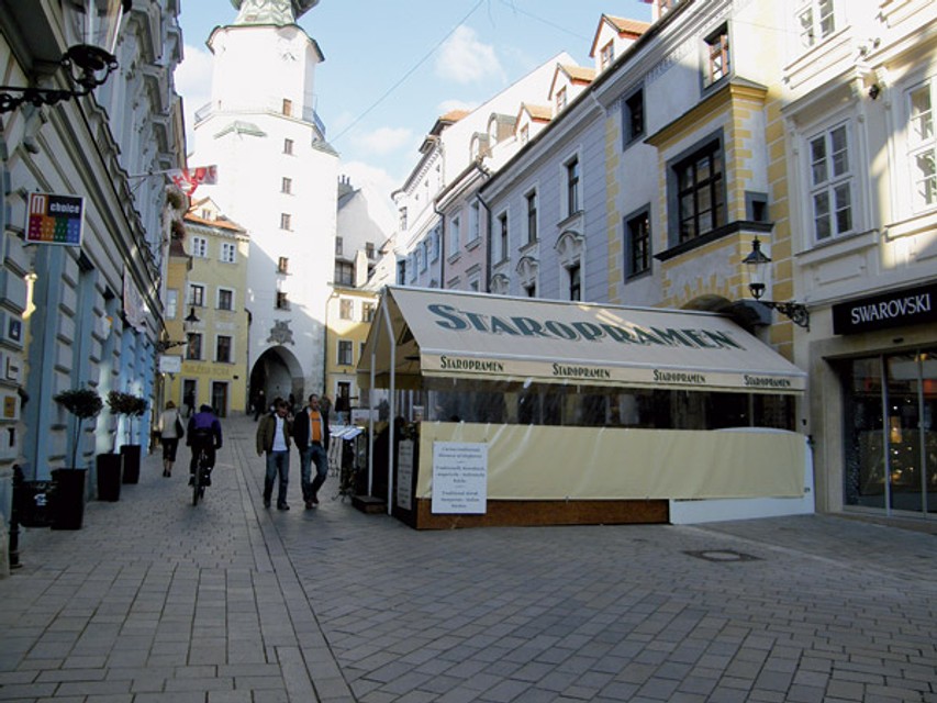 Ide o terasu reštaurácie Alt Stadt, ktorej prevádzkovateľom je spoločnosť Hermanos. Tá mala pôvodne legálnu terasu s povolením od 1. apríla do 15. októbra 2007. Lenže v priebehu sezóny, ako nás informovala hovorkyňa staromestskej samosprávy Alena Kopřivová, vznikla vedľa Alt Stadt nová prevádzka a tá nesúhlasila, aby mala reštaurácia terasu aj pred jej výkladom a vchodom do obchodu.