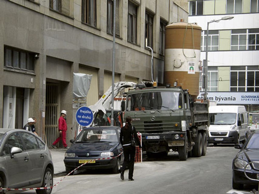 Investor Orco Property Group tu prestavuje bývalú budovu banky na pompézny objekt City Gate so 46 bytmi, nákupnou galériou a štýlovou kaviarňou. Nie je vinou investora, že stavbári znepríjemňujú život okoloidúcim i obyvateľom ulice, je však za robotníkov v konečnom dôsledku zodpovedný.