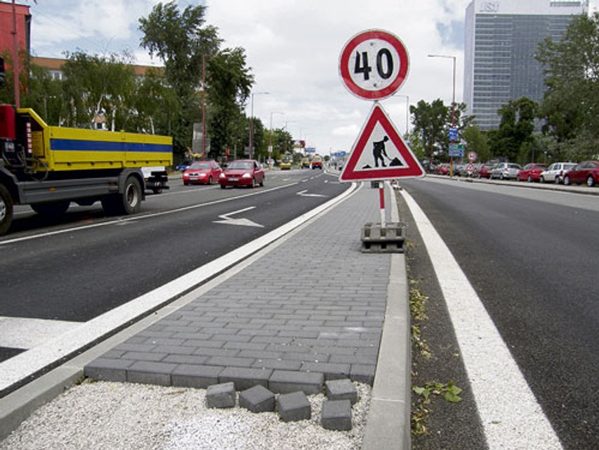 Deliaci pás na Landererovej ulici v úseku od vyústenia Olejkárskej po areál bývalého Presscentra (dnes Tower 115) v týchto dňoch upravujú, namiesto zelene sem kladú zámkovú dlažbu.