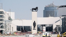 Socha M. R. Štefánika stojí od pondelka 20. apríla 2009 pre novou budovou Slovenského národného divadla. Spolu so sochou leva, ktorý stojí na pylóne, ju dala osadiť Nadácia Milana Rastislava Štefánika.