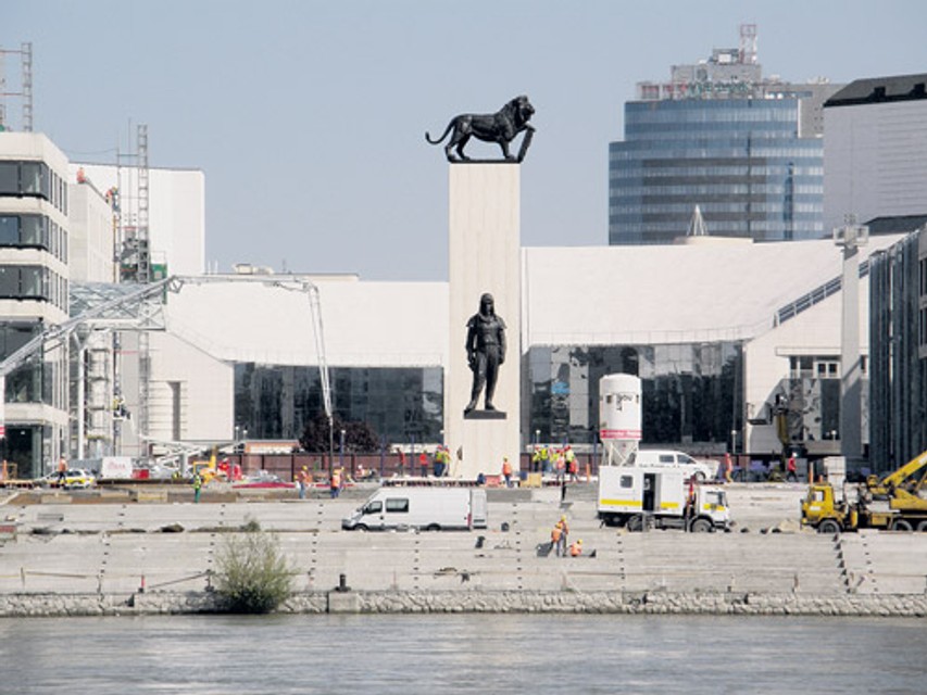 Socha Štefánika a leva dostali pred osadením na nábreží rovnaký farebný odtieň, aby spolu ladili. Predseda Nadácie M. R. Štefánika Ján Fuska pre Bratislavské noviny povedal, že do pylónu pod sochou Štefánika uložia schránku. Bude v nej zakladajúca listina s podpismi prezidentov a veľvyslancov, ktorí boli pri slávnostnom položení základného kameňa súsošia. Do schránky uložia aj kovové mince so slovenským znakom a jednu plaketu.
