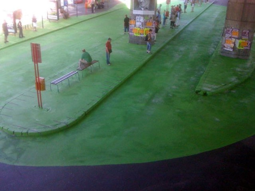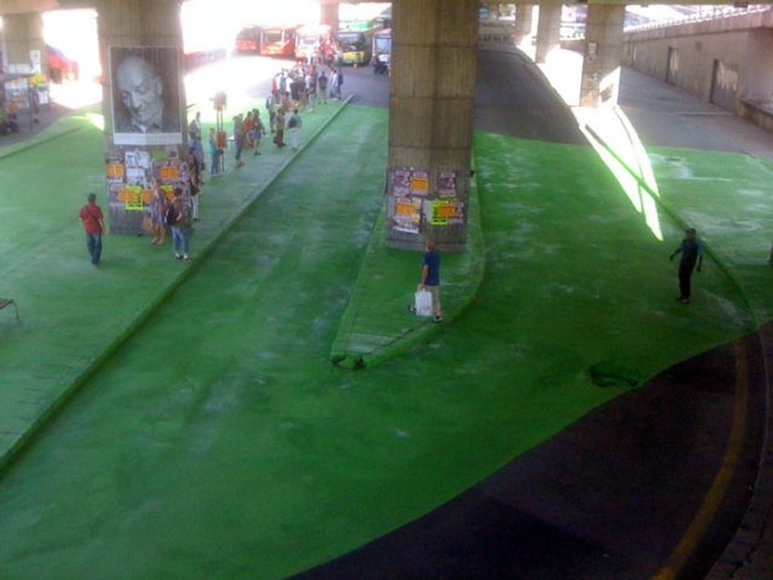 Bratislavčania, ktorí pôjdu ráno do práce, sa netradične prejdú po ploche natretej nazeleno. "Prostredie na konečnej autobusov v Starom Meste, v ktorom ľudia čakajú na zastávkach, je dlhé roky bez povšimnutia. Takýmto gestom skúšame pripomenúť, že by to mohlo byť aj inak," povedal pre TASR Matúš Vallo z OZ Mestské zásahy. Podľa neho to nie je konečný variant, ale jedna z ciest pred normálnym riešením.