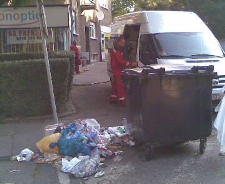 Cestou s deťmi do materskej školy sme si všimli neporiadok pri kontajneri, ktorý na rohu Chorvátskej a Justičnej ulice zostal v pondelok ráno 26. septembra po odvoze smetia.