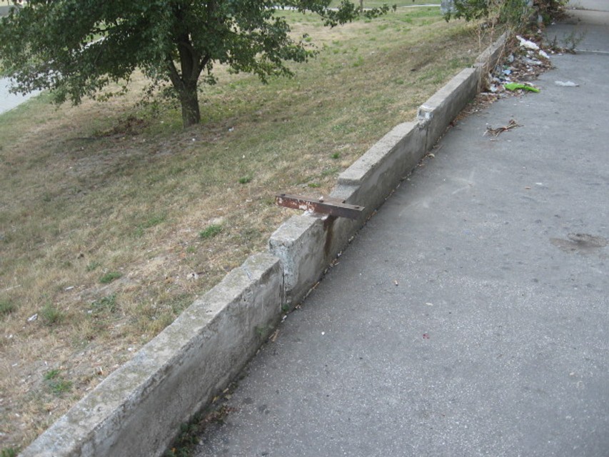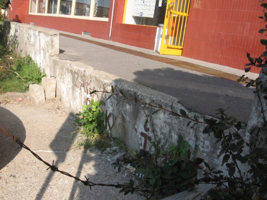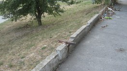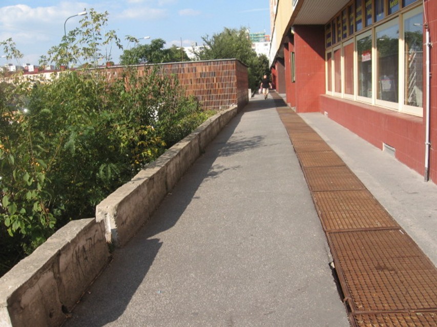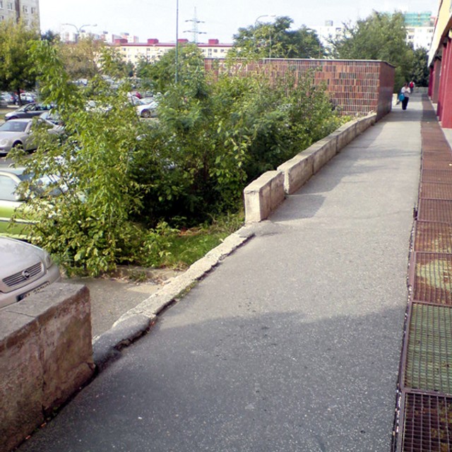 Na jednej strane domu sú asi jeden a pol metra pod terasou dve betónové plochy, na druhej strane zase miestami už rozobratý betónový múrik, za ktorým je približne 120 centimetrov hlboká jama. Pri poslednom domovom vchode sa nachádzajú schody, ktoré nemajú osadené zábradlie. Všade hrozí nebezpečenstvo, stačí, ak sa človek šmykne, alebo keď najmä deti či starší ľudia nebudú opatrní.