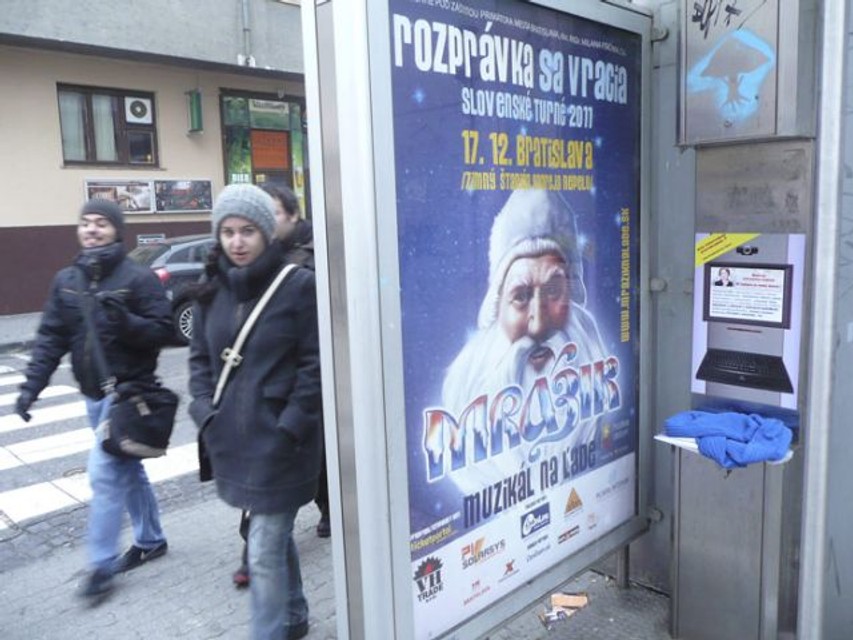 Namiesto telefónnych automatov sú v búdkach už mesiace nálepky s prísľubom internetu.FOTO - Juraj Mladý