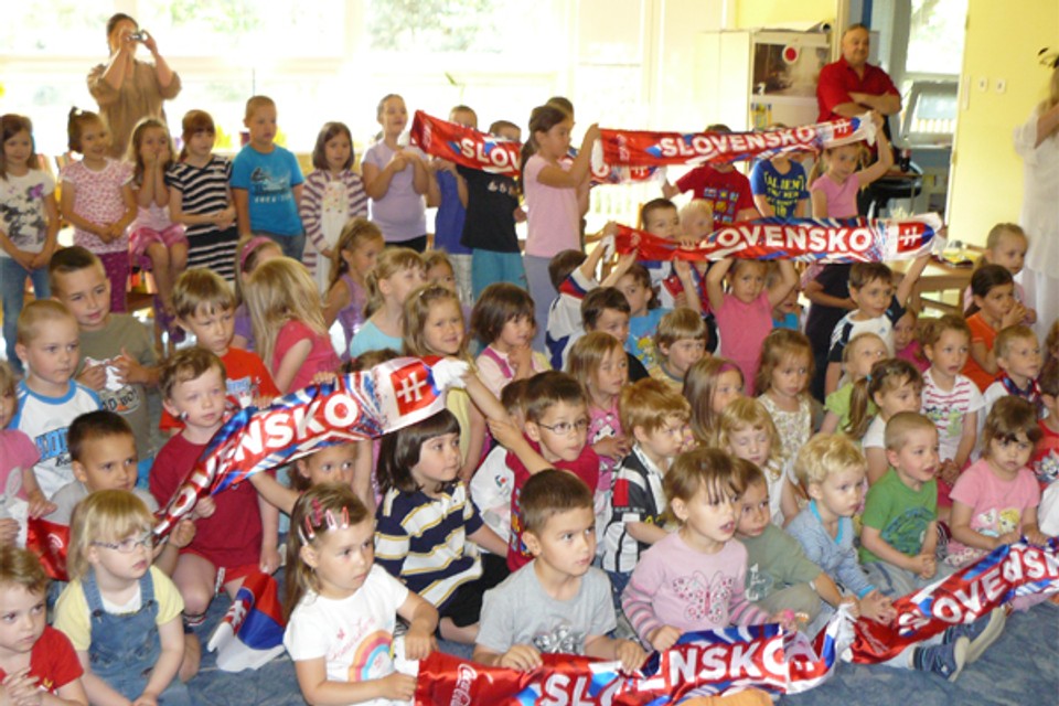Aj v jednej materskej škole bola hokejová nálada prostredníctvom rádia, kedy deti pri tvorení so svojimi učiteľkami počúvali ako to našim hokejistom na Majstrovstvách sveta ide. A vyšlo to. Naši hokejisti skončili strieborní, pre celé Slovensko aj tak ako zlatí. Deti vyzdobené vlastnoručne spravenými vlajkami, pomaľovanými líčkami so slovenskou vlajkou, v dresoch a v šáloch so slovenským znakom alebo znakom klubu Slovanu očakávali v materskej škole na Cabanovej ul. najmladšieho hokejového hráča Libora Hudáčka. Dňa 30. mája 2012 privítali hokejistu pokrikmi ako na ľadovej ploche. "Hu a hu a Hudáček do toho", "Kto neskáče nie je Slovák, hop, hop, hop". Milo prekvapený Hudáček sa privítal s pani riaditeľkou Polákovou, deťom zatlieskal a pochválil ich výtvory. Ukázal deťom striebornú medailu, ktorú si strážil ako oko v hlave, no napokon ju deťom a aj učiteľkám dovolil si dať na krk. Konečne sa usadil za detský stôl na detskú stoličku a deti so zdvihnutými rúčkami sa hlásili, aby mu mohli položiť pár otázok. Pomohla im aj pani učiteľka Ivanová, ktorá prezradila, že aj hokejistova mamina je tiež učiteľka v materskej škole.