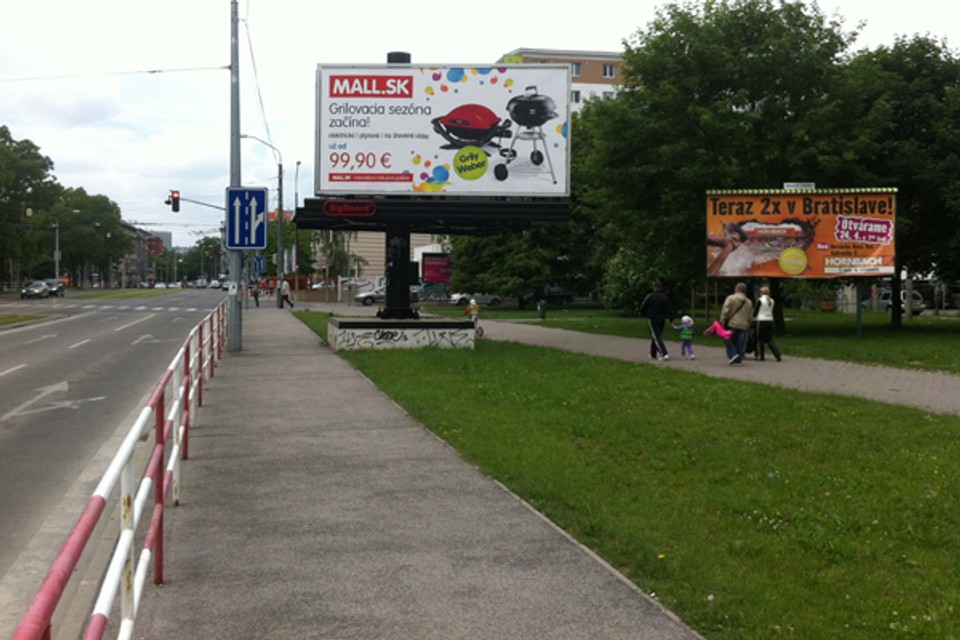 Keďže som na tento podnet nedostal odpoveď, 31. októbra 2012 som e-mailom oslovil ružinovského starostu s tým, že som nedostal odpoveď. Upozornil som ho, že mi je ľúto strateného času a nečinnosti miestneho úradu, lebo namiesto stromov tu bol postavený obrovský reklamný pútač iba 50 cm od chodníka a 3 metre od cesty! A to v čase, keď pán primátor dal manifestačne niekoľko pútačov odstrániť. Napokon to vyzerá tak, akoby nie starosta a primátor, ale úradníci rozhodovali, veď ide o vplyvnú lobby.