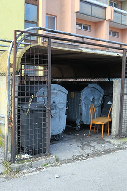 Kontajnerové stojisko pred vchodom číslo 8 je neustále plné a nachádza sa hneď pod oknami obyvateľov. Nedostatočnú vzdialenosť od okien potvrdili aj hygienici. Obyvatelia sú nešťastní, že musia trpieť zápach a špinu aj svojich susedov a nemajú možnosť odpad ani separovať.