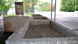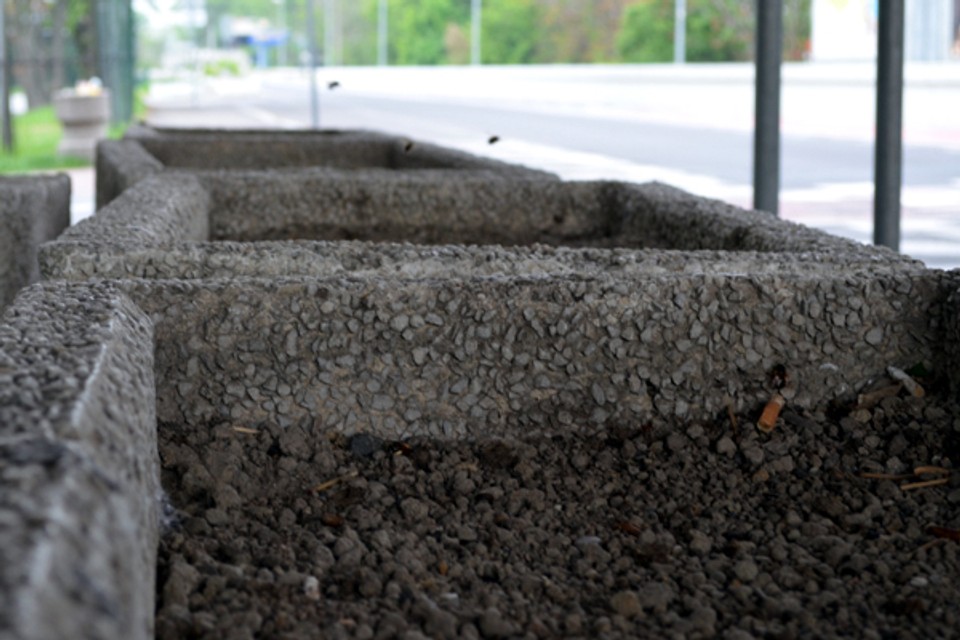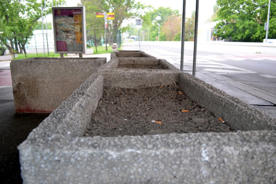 Pod Mostom SNP na zastávke MHD Viedenská cesta sa nachádzajú štyri betónové kvetináče. Napriek tomu, že bratislavská samospráva dala na výsadbu kvetín koncom roka 2013 takmer 29-tisíc eur, žiadne tam nie sú. Je v nich iba hlina. Niektorí si ich azda preto mýlia s odpadkovými košmi, keďže je v nich mnoho cigaretových ohorkov. V hline sa však usídlili aj včely samotárky.
