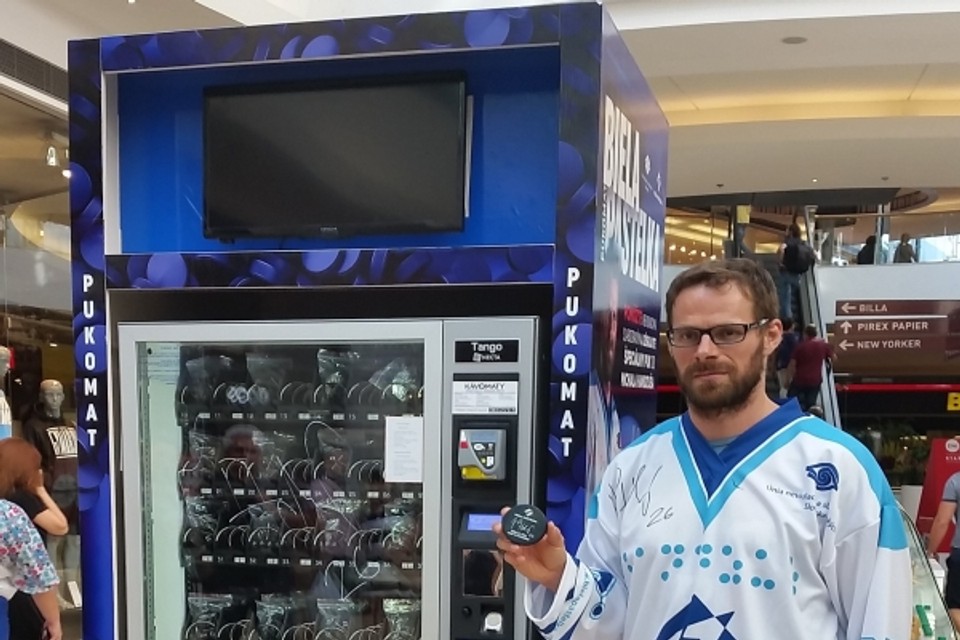 Ambasádorom tohtoročnej verejnej zbierky je slovenský hokejový reprezentant Michal Handzuš, ktorý dáva celej zbierke hokejový nádych. V spolupráci s ním pripravili organizátori aj dražbu originálnych hokejových predmetov od známych slovenských hokejistov ako Marián Hossa, Zdeno Chára či Tomáš Tatar. Výťažok dražby bude venovaný na konto Bielej pastelky 2015. Od 17. septembra je tiež možné zakúpiť si špeciálny puk s podpisom M. Handzuša a podporiť tak sumou 9 € ľudí so zrakovým postihnutím. Celá suma z predaja pukov bude odvedená v prospech verejnej zbierky Biela pastelka – pukomat. Pukomat je špeciálne upravený automat na predaj pukov. Nachádza sa v obchodnom centre Eurovea na Pribinovej ulici v Bratislave do konca septembra.