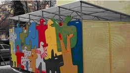 Podarilo sa! Základná konštrukcia súčasného stojiska je kovová s povrchovou úpravou odolnou proti korózii. Aby sa docielila dostatočná cirkulácia vzduchu vnútri stojiska, na dve obvodové steny a posuvnú bránu sa použil perforovaný materiál – ťahokov. Okoloidúcich však upúta predovšetkým mozaika tvorená drevenými ručne maľovanými dielcami v tvare ľudí a zvierat. Nájdete tu slona, pána so psom na prechádzke alebo aj draka!