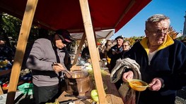 „Varili nadšenci a profesionálni kuchári v siedmich kotloch, vydali sme vyše tisíc porcii, získali sme na dobrovoľných príspevkoch vyše 400 EUR, ktoré použijeme na nákup pomôcok pre naše Seniorcentrum,“ prezradil nám starosta Starého Mesta Radoslav Števčík, ktorý sa na akcii tiež zúčastnil (na fotoghrafii v galérii v žltej vetrovke).