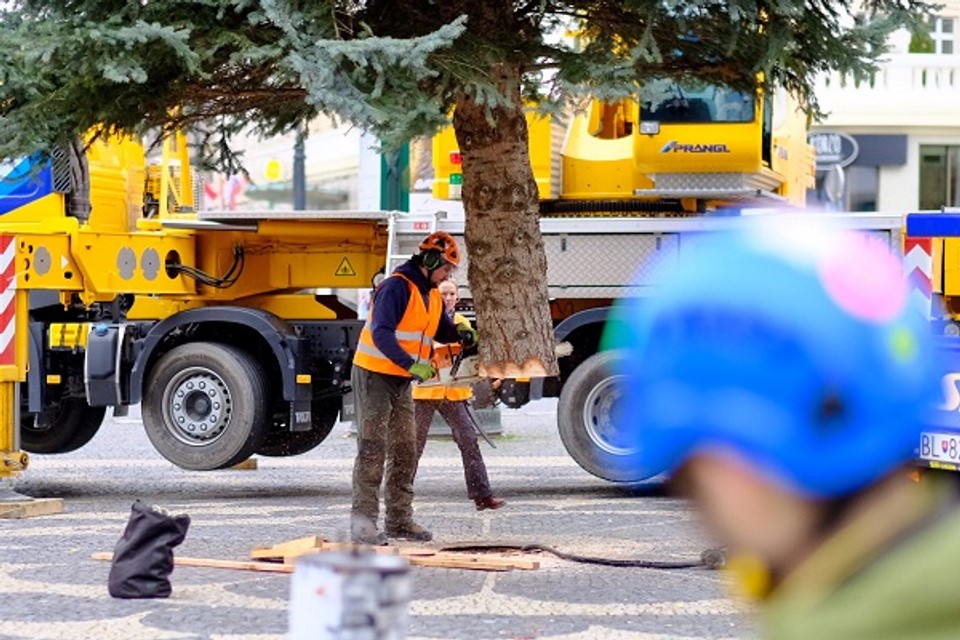 FOTO: Na Hviezdoslavovom námestí už stojí stromček. Takto ho osadili