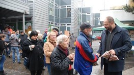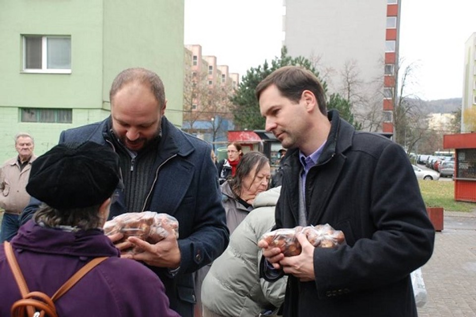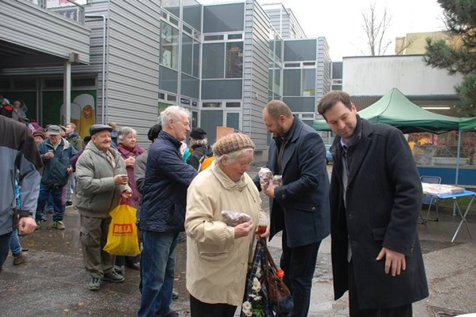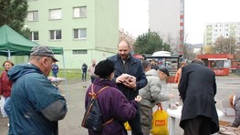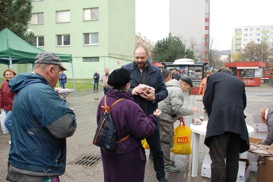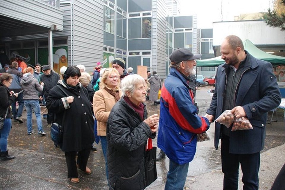 Starostovia cibuľky najskôr rozdávali pred Domom služieb na ulici M.Sch.Trnavského a potom pri Obchonom dome Saratov. Záujem ľudí bol veľký.