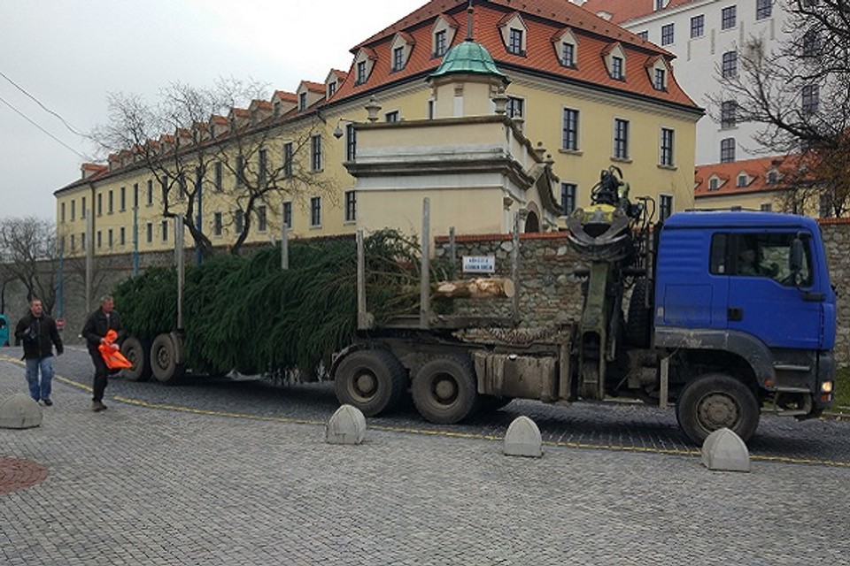 Štátny podnik Lesy SR dnes osadil vianočný stromček pred budovou národnej rady na Námestí Alexandra Dubčeka.