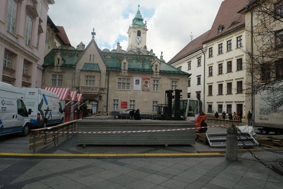 FOTO Na Primaciálnom námestí už stavajú klzisko