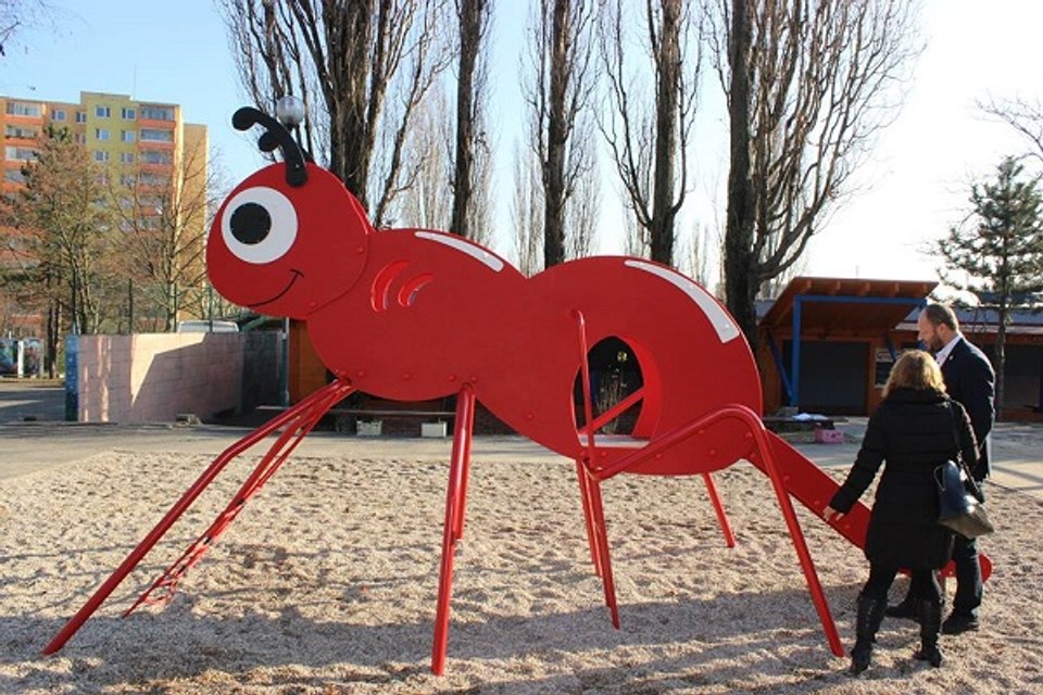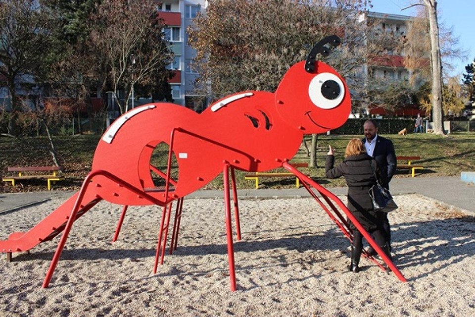 Zaťovič si včera prezeral aj nesprávne osadenú „mravec“ šmykľavku, na ktorej zle osadili schodíky, dodávateľ „mravca“ opraví, aby bezpečne slúžil deťom.