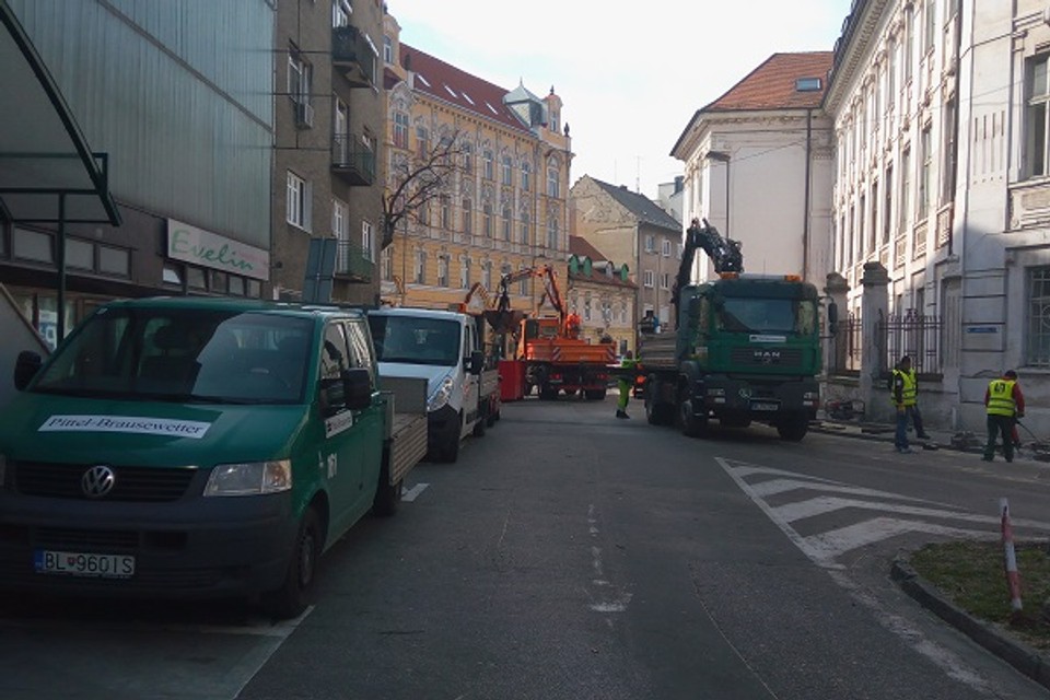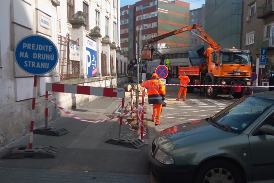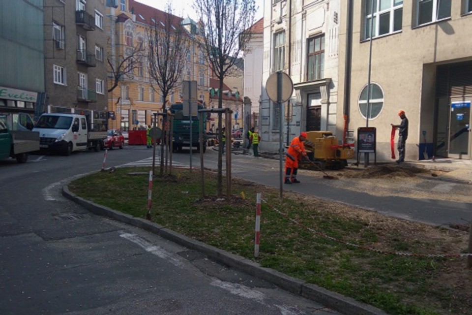 Na Palackého ulici sa už rozbehli práce na obnove uličného stromoradia a rozširovaní existujúceho chodníka, vrátanie zúženia profilu vozovky. Momentálne odstraňujú vypílené stromy, ulica je neprejazdná.