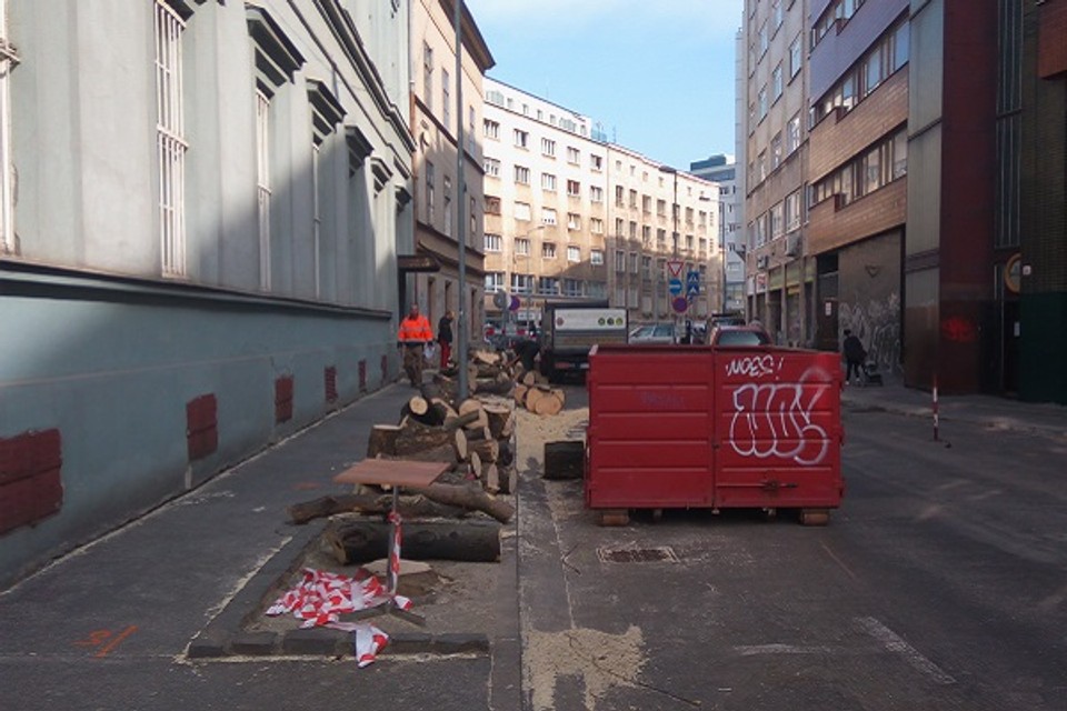 Zásah mestská časť ešte minulý týždeň vysvetlila: „V súčasnosti je na ulici stromoradie z brestovcov, ktorých stav je podľa dendrologického posudku zlý až kritický. Viaceré stromy sú vážne poškodené, pri niektorých hrozí bezprostredné riziko zlomu alebo vývratu, tak ako pred rokom, keď jeden zo stromov padol na zaparkované auto. Je dôvodný predpoklad narušenia koreňových sústav všetkých stromov nachádzajúcich sa v stromoradí vplyvom rozširovania komunikácie v minulosti v jeho bezprostrednej blízkosti.“ V súčasnosti sú už tieto stromy vypílené a robotníci dnes pracovali na ich odstránení z miesta. Brestovce pre ich zlý zdravotný stav museli odstrániť aj pred úradom vlády.