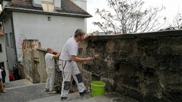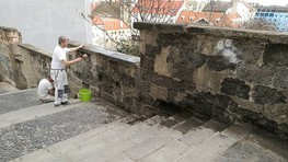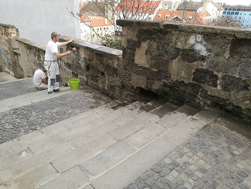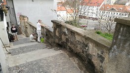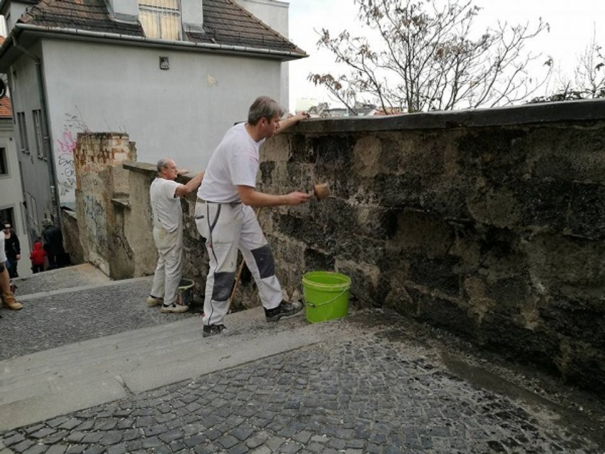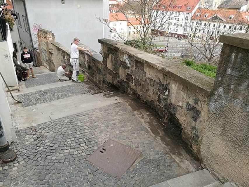 Dobrovoľníci začali s opravou múrika na Zámockých schodoch