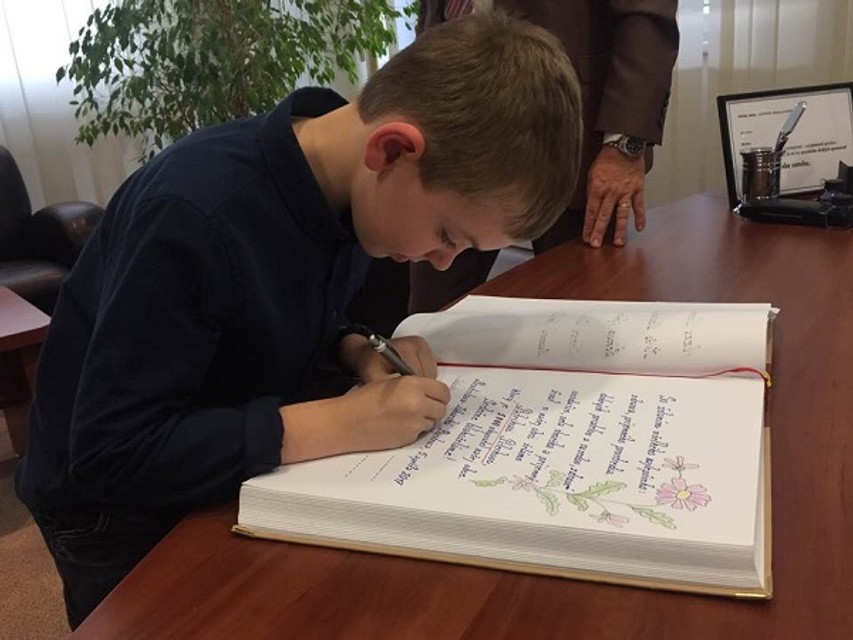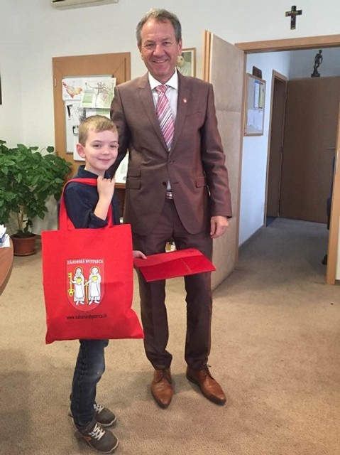 Patrikovi odovzdal spomienkový darček starosta mestskej časti Jozef Krúpa, malý školák sa podpísal do pamätnej knihy Záhorskej Bystrice, kde zostane záznam o tejto udalosti. "Verím, že Patrik i celá jeho rodina nájde v Záhorskej Bystrici zázemie pre spokojný a šťastný život,“ uviedol pri tejto príležitosti starosta Záhorskej Bystrice.