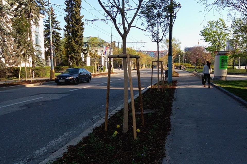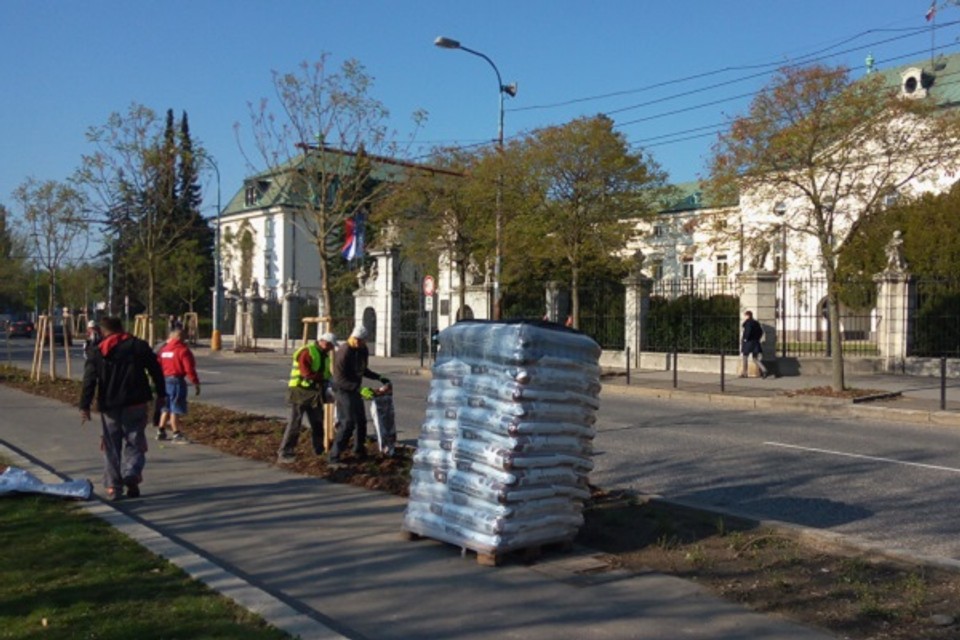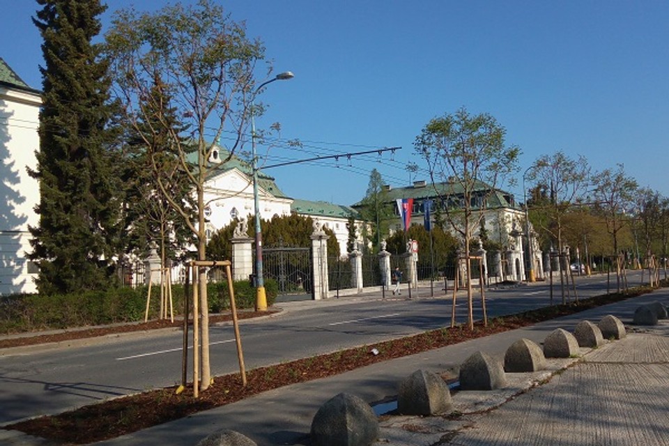 Alej pri ceste popred Úrad vlády je už nanovo vysadená. Okrem nových stromčekov pribudli i kvety.