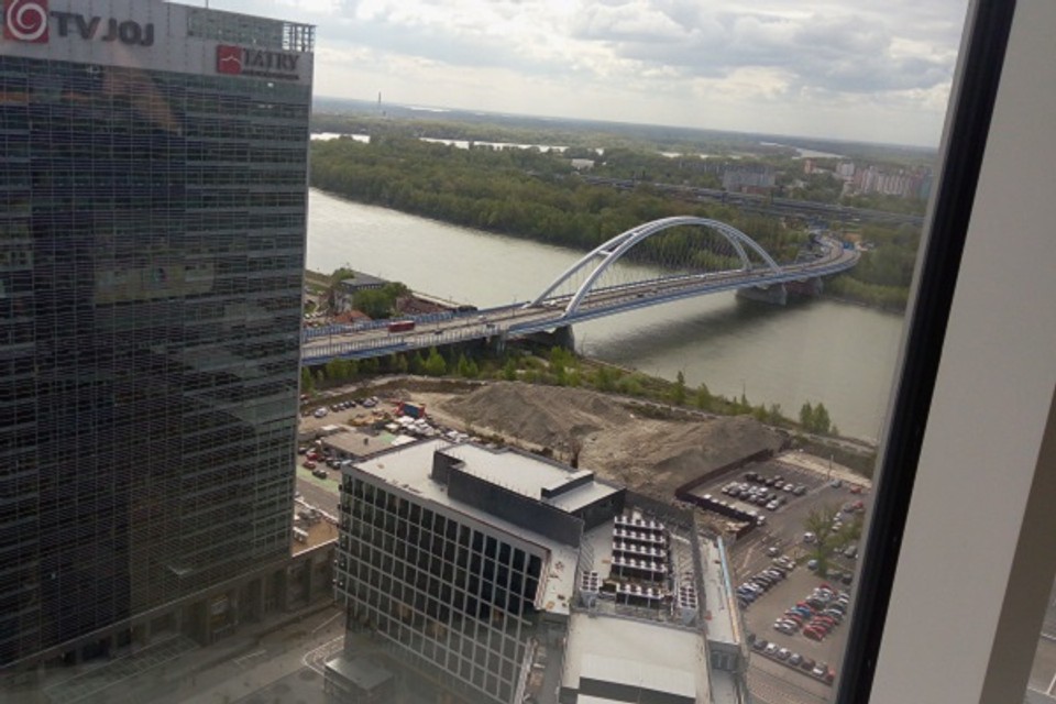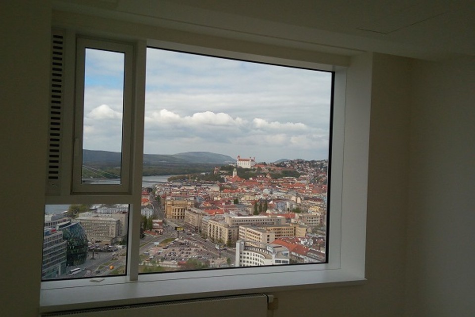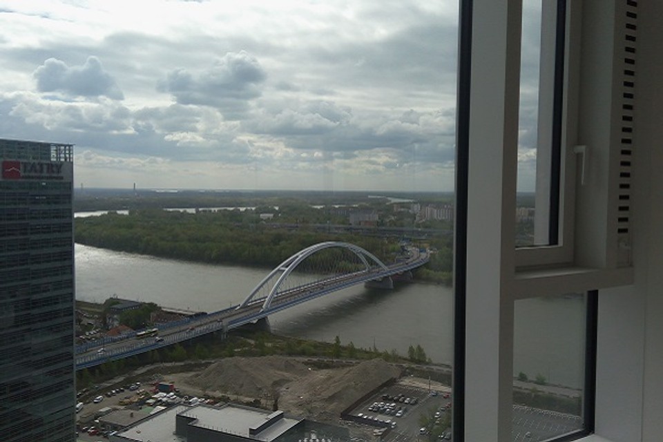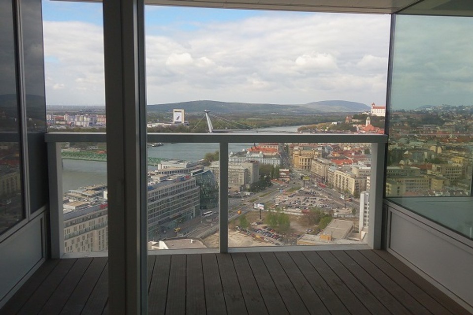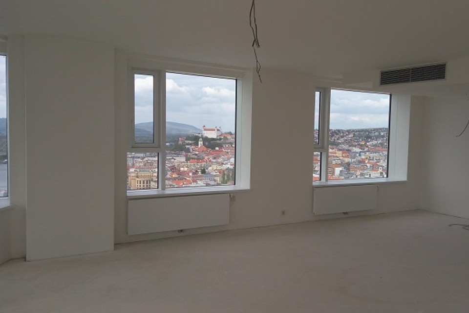 Päťizbový byt na 33. poschodí v polyfunkčnom objekte Panorama City (Landererova ulica, kúsok od novej budovy SND), ktorý sme navštívili, v súčasnosti dokončujú. Jeho majiteľ zaň zaplatil podľa našich informácií 750-tisíc eur. Z bytu je naozaj úchvatný výhľad či už smerom na Bratislavský hrad, Dunaj alebo Petržalku, mesto máte naozaj ako na dlani.