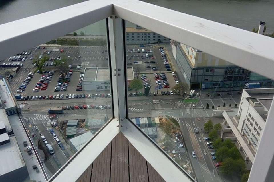 Svoje čaro pre tých, ktorí nemajú strach z výšky, má i pohľad z balkónov, keďže sú na nich priehľadné zábradlia. Asi najpríťažlivejšou časťou bytu je obývačka s balkónom a viacerými oknami, z ktorých vidíte do viacerých strán naraz.