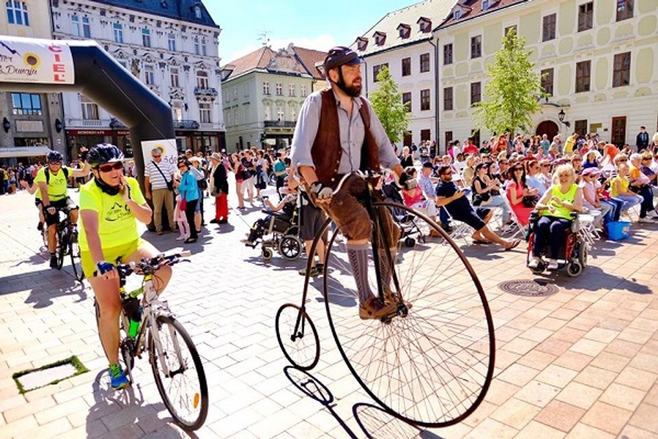 V centre Starého Mesta bol už tretíkrát cieľ etapovej jazdy Od Tatier k Dunaji na bicykli napriek skleróze multiplex.