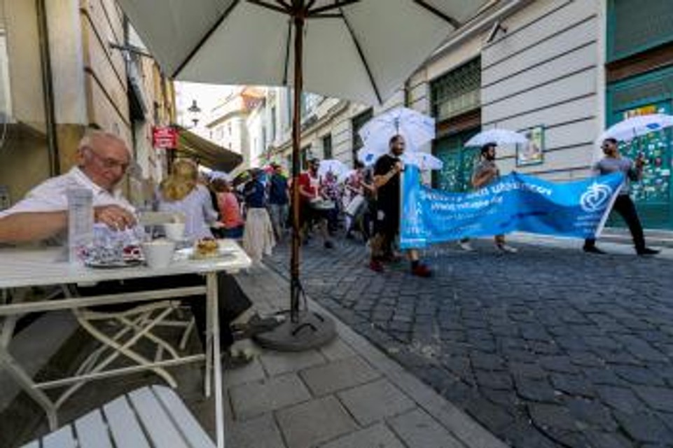 Približne 60 ľudí sa zúčastnilo na dnešnom Dáždnikovom pochode ulicami bratislavského Starého Mesta, ktorý sa uskutočnil už po šiesty raz. Podobné pochody sa organizujú v mnohých mestách Európy od roku 2010. Organizátori si aj takýmto spôsobom chceli Pre TASR to povedal Peter Devínsky zo Slovenskej humanitnej rady.