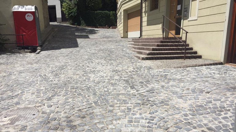 Pred dokončením je aj oprava Pállfyho schodov, teda schodov zo Svoradovej na Škarniclovu. „Náš dodávateľ dokončuje dláždenie podest, ktoré boli pôvodne betónovo-asfaltové. Spoločne s pamiatkármi sme nakoniec našli toto riešenie - použili sme dlažbu z Mikulášskej ulice,“ vysvetlil Števčík.