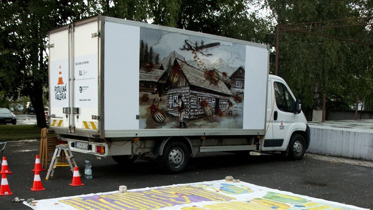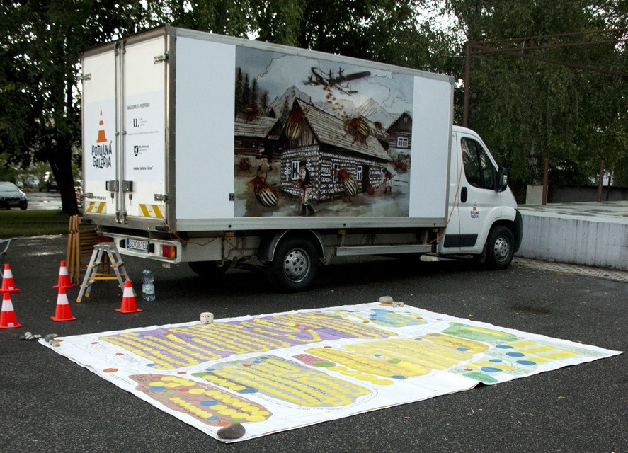 Potulnú galériu môžete navštíviť na jej úplne poslednej zastávke v nedeľu o 18.00 hodine v Karlovej Vsi v reštaurácii Kontajner Riviéra, kde sa uskutoční jej finisáž. Organizátori výstavou a teda výtvarným umením oboznamujú ľudí s tým, ako rozlíšiť rozdiely medzi hoaxom, hejtom, konšpiračnou teóriou či dezinformáciou. Všetko v priestore malého nákladného auta a jeho okolí, kde sú sústredené diela súčasných vizuálnych umelcov bojujúcich proti xenofóbii, rasizmu a extrémizmu.