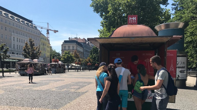 Turistom, ktorých je rok čo rok viac, poskytne stánok informácie o Bratislave a jej atraktivitách až v deviatich jazykoch. Podľa štatistík Bratislava eviduje nárast počtu domácich aj zahraničných návštevníkov už tretí rok za sebou.