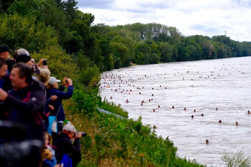Vstúpiť do rieky sa dnes popoludní na mieste bývalého PKO rozhodlo nakoniec 410 ľudí. Nie všetci preplávali na petržalskú stranu, niekoľkých museli ratovať záchranári na člnoch, no čo je výborné, nikomu sa nič vážne nestalo. Preplávať rieku trvalo väčšine účastníkov cca štvrťhodinku, aj menej.