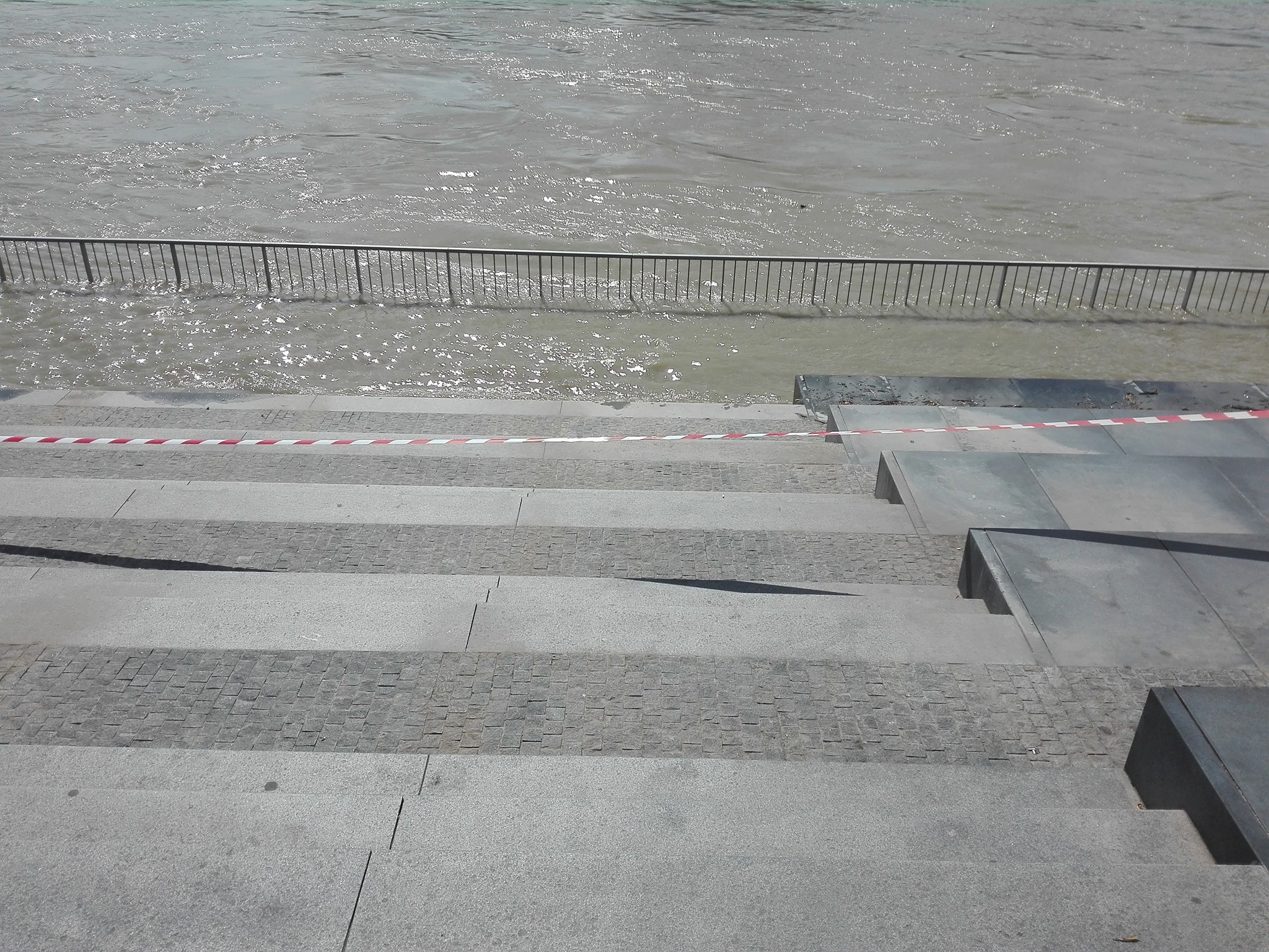 Kým ešte včera v Dunaji plávalo vyše 400 ľudí, tak dnes už je nebezpečné sa k jeho brehu priblížiť. Hladina rieky momentálne dramaticky stúpa a ráno o deviatej prekročila 6-metrovú hranicu. Momentálne sa výška hladiny pohybuje na úrovni 606 centimetrov, takže napríklad chodník pred nákupným centrom Eurovea už bol zaplavený.