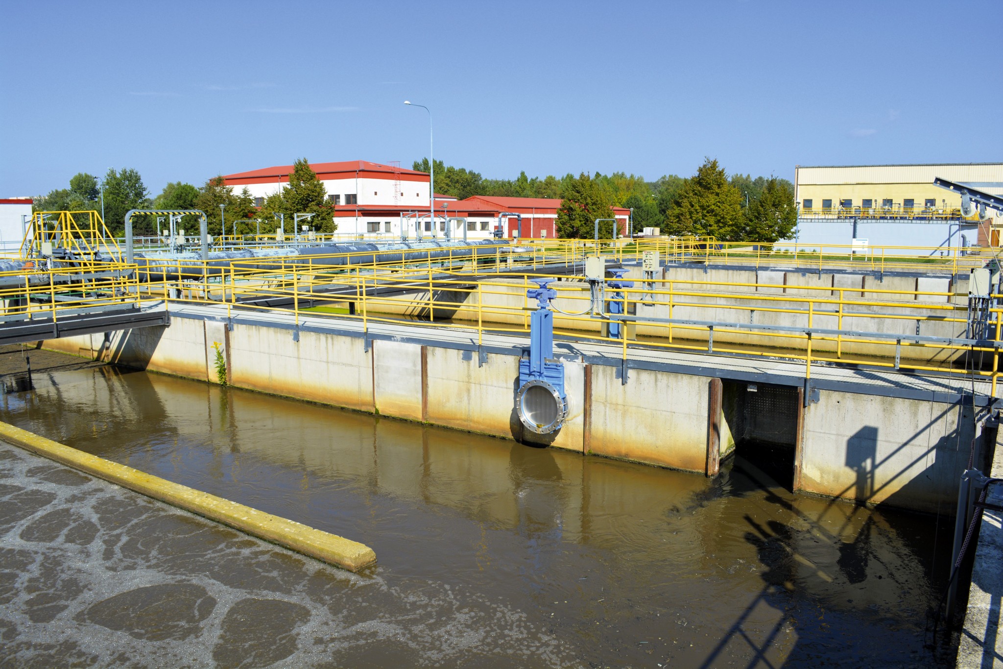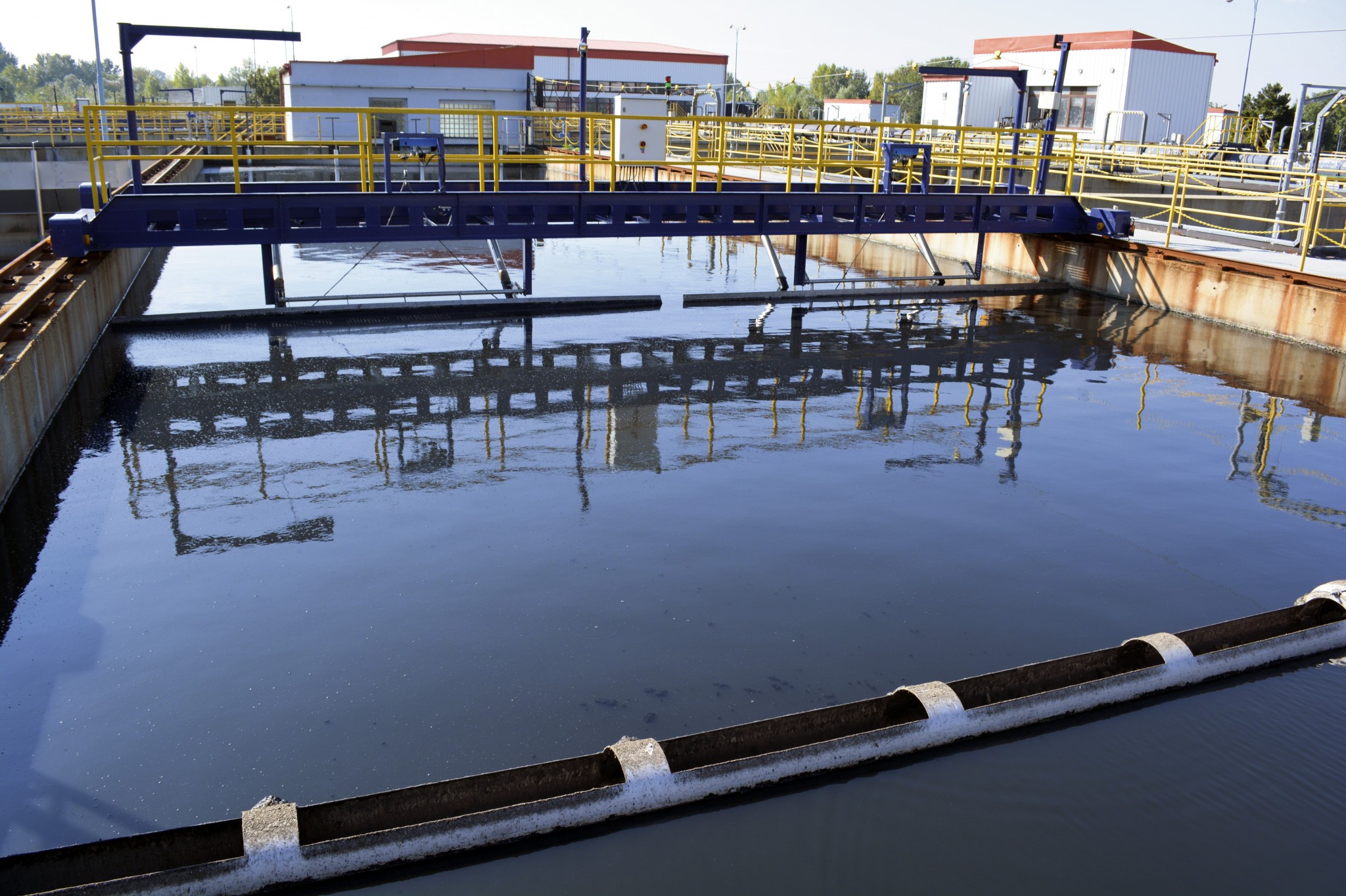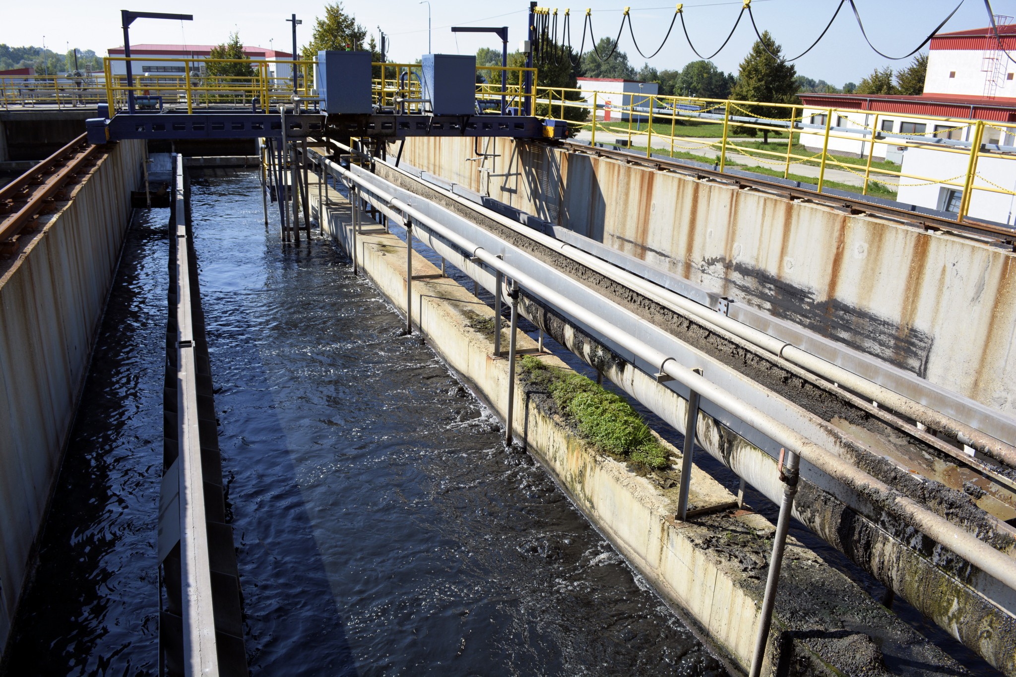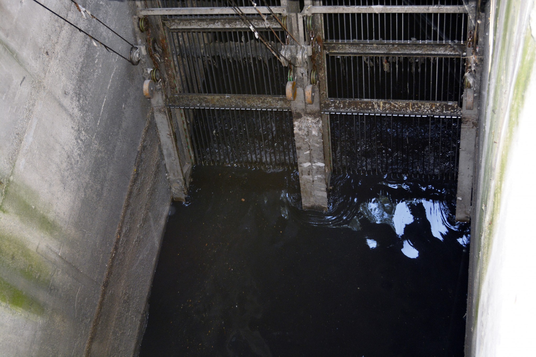 1. Prítok odpadovej vody do čistiarne. Je tu lapač štrku a hrubé hrablice, ktoré majú osem centimetrov široké štrbiny. Ich úlohou je zachytiť štrk a kamene, ale aj dosky, brvná a iné plávajúce nečistoty.