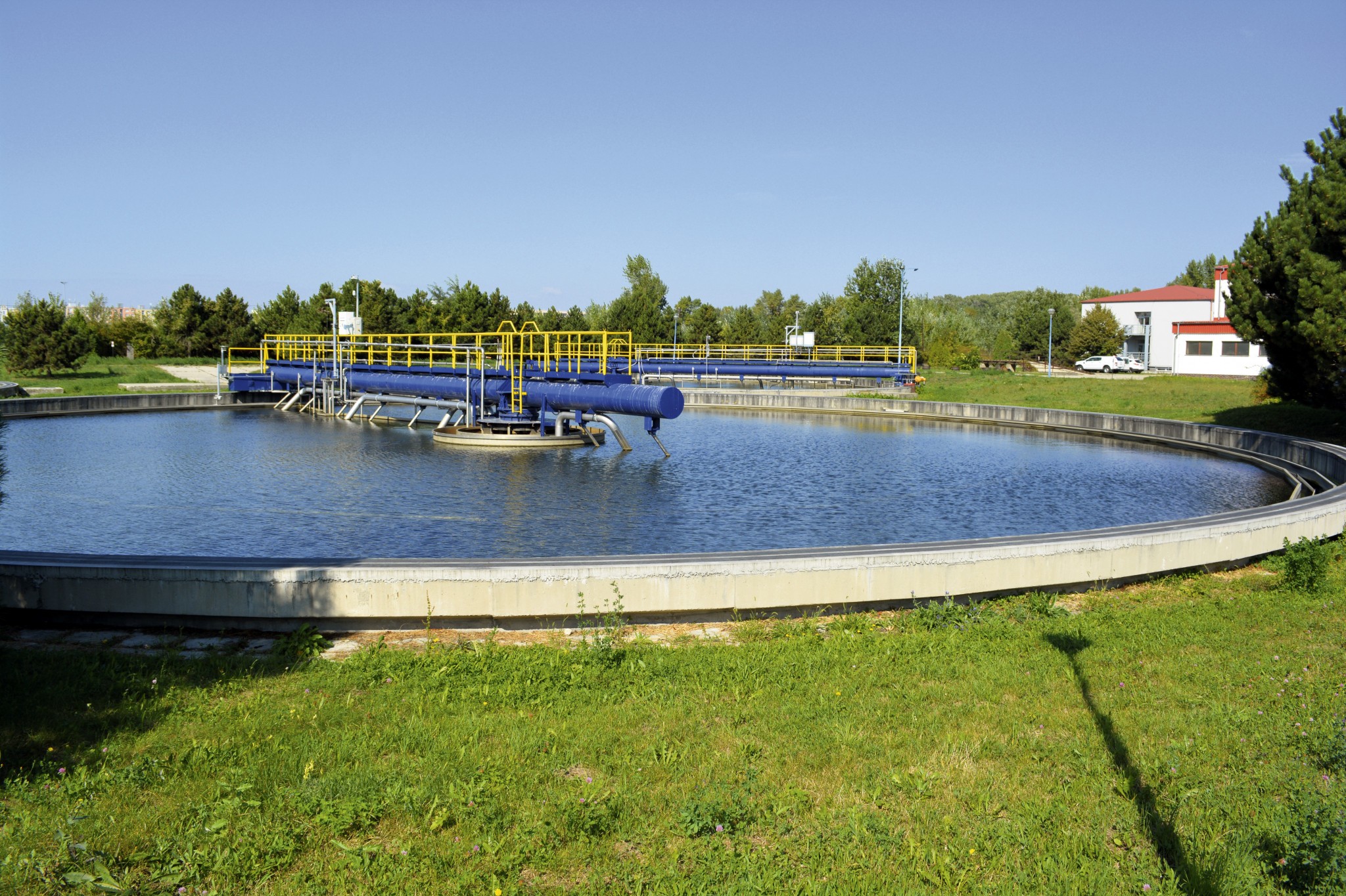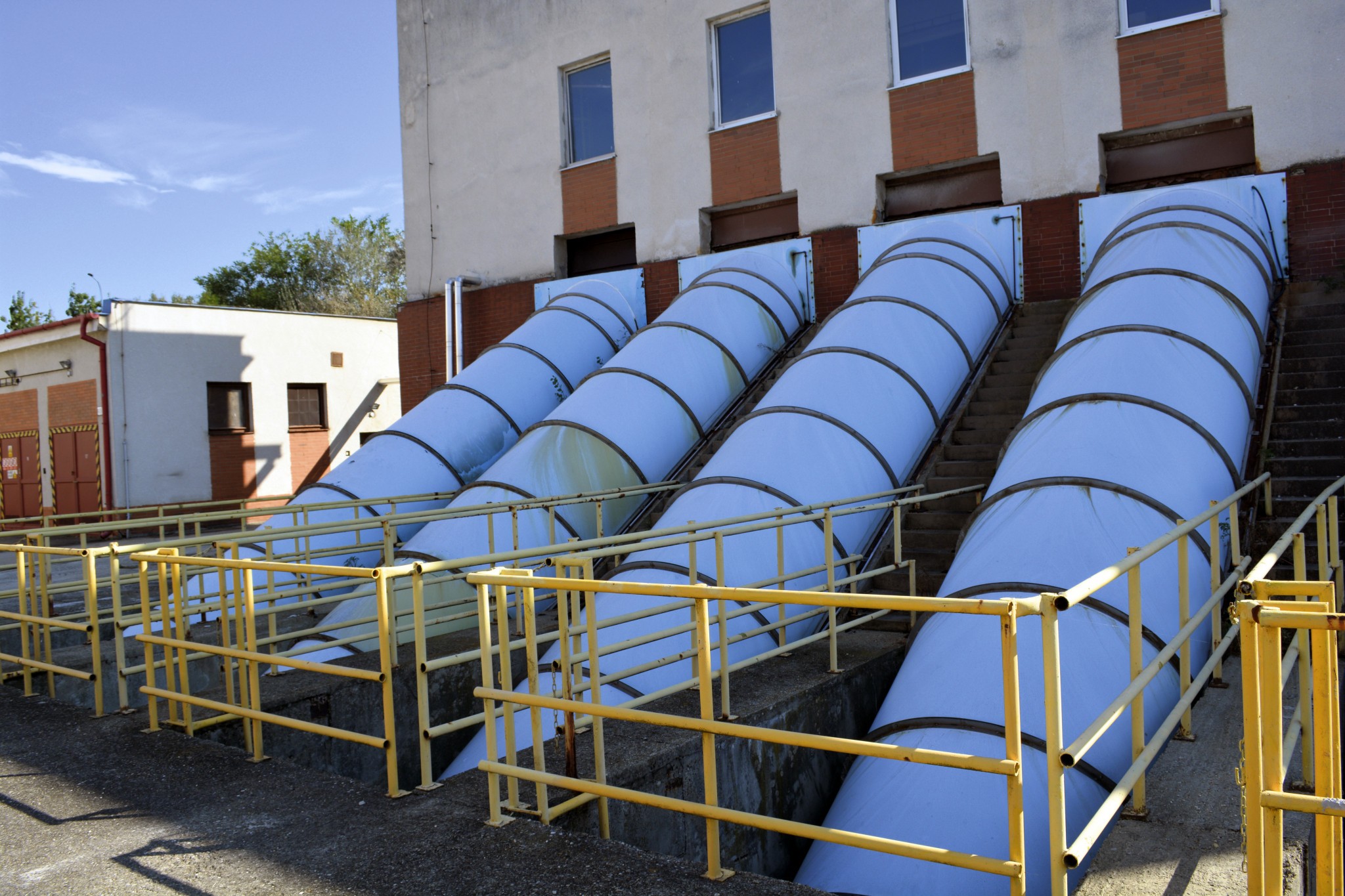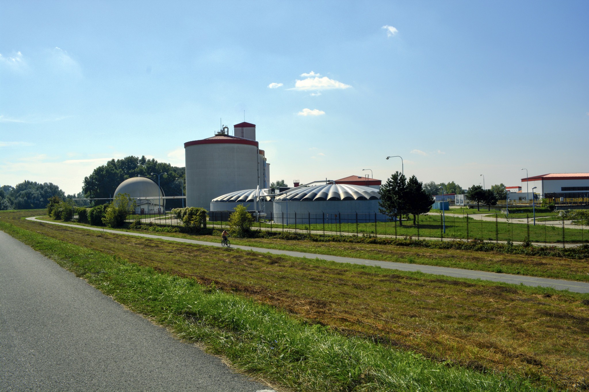 7. V primárnych zahusťovacích nádržiach (tieto nádrže vidíme z hrádze) sa zahusťuje kal. Veľmi amatérsky povedané - oddelí sa od zvyšnej vody a potom je dávkovaný a čerpaný do vyhnívačky. Presne tieto nádrže zapáchali, kým neboli prekryté. Dnes už disponujú aj biofiltrom.