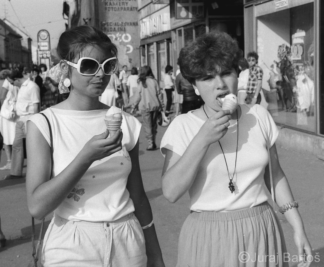 Takto slečny lízali zmrzlinu na Obchodnej približne pred 30 rokmi. Kopček stál 50 halierov, neskôr 1 Kčs.