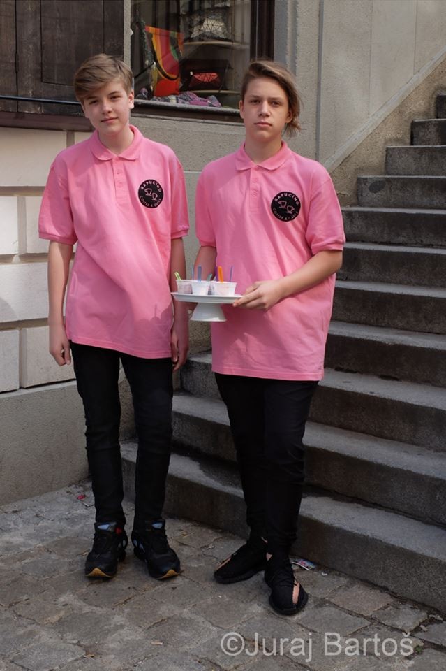 Mladí obsluhujúci v kaviarni a ich firemná rovnošata.