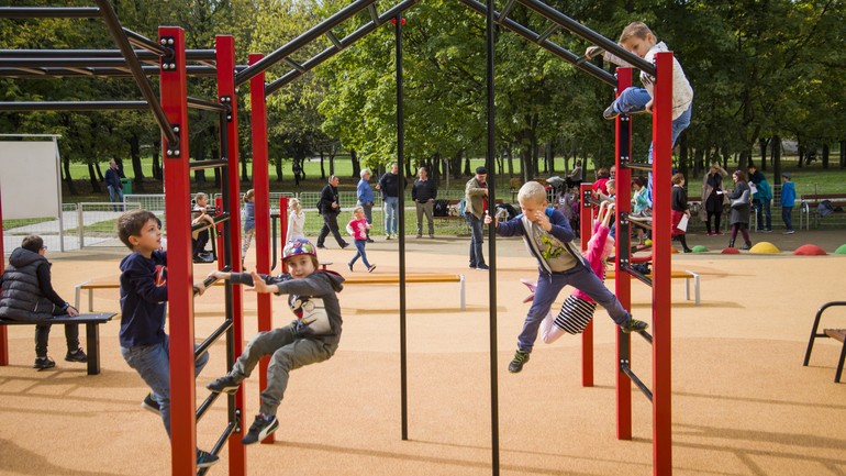 Samotný povrch svojím farebným rozlíšením vytvára bežeckú dráhu pre deti, ktoré sa môžu tešiť aj na 3D polgule na skákanie či chodník na preteky autíčok. Na zlepšenie držania a spevnenia tela budú návštevníkom slúžiť tzv. balančné prvky. Nechýba malé ihrisko s bránkami na futbal, moderná streetworkoutová zostava, pyramída z lanovej siete, hojdačka „vtáčie hniezdo“, kopec s lezeckými úchytmi či samostatné cvičebné stroje pre seniorov.