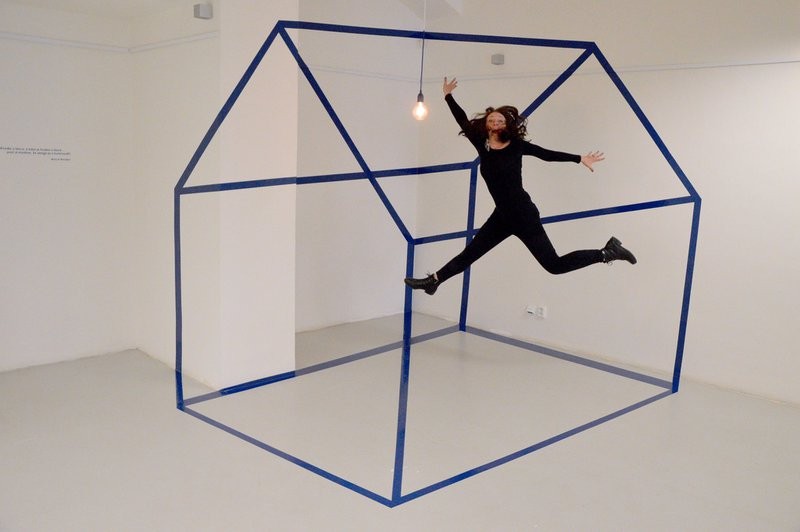 Site-specific inštalácia „In or Out House“ je vlastne kresba, ktorá vťahuje diváka do optickej ilúzie dvojrozmerného domu v členitom priestore. Autorka počíta s nedokonalosťou ľudského vnímania. Správna interpretácia inštalácie si vyžaduje špecifický uhol pohľadu. Putovaním diváka po priestore sa na prvý pohľad náhodné čiary transformujú tak, aby v konkrétnom bode dosiahli logické usporiadanie. Divák sa tak môže nachádzať vo vnútri domu či mimo neho. Je to v poradí druhá inštalácia autorky, pri ktorej využíva optické ilúzie, nadväzuje však na svoju predchádzajúcu nábytkovú tvorbu a možnosti využívania rôznych foriem ilúzií v dizajne.